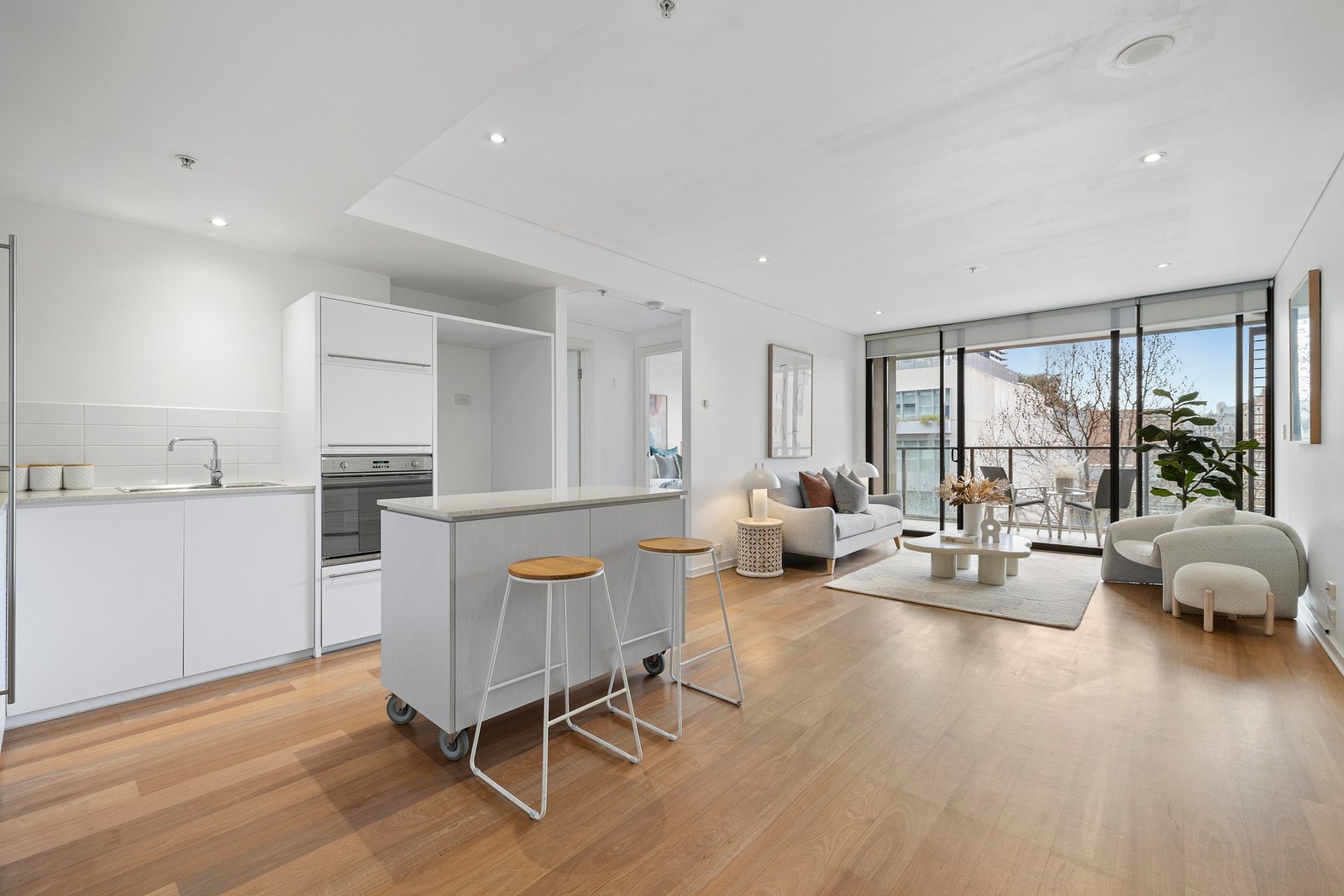 Offering luxe, modern living at its finest, this contemporary home includes hardwood floors within the living zone and a well-appointed kitchen, flaunting stone surfaces, tiled splashbacks, gas cooktop, Smeg wall oven, integrated dishwasher and movable stone island bench. Further impressive inclusions of Euro laundry facilities, single secure car space, plus an array of communal complex facilities to enjoy, including a lavish swimming pool, well-equipped gym and lush communal gardens.