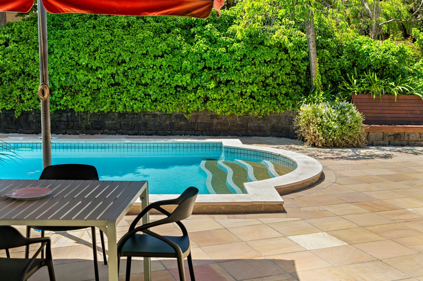 The grand kitchen overlooks the sparkling in-ground pool for resort style beauty and comes appointed with top tier Euro appliances, luxury stone benches and a handy appliance cupboard to house your coffee machine and toaster.