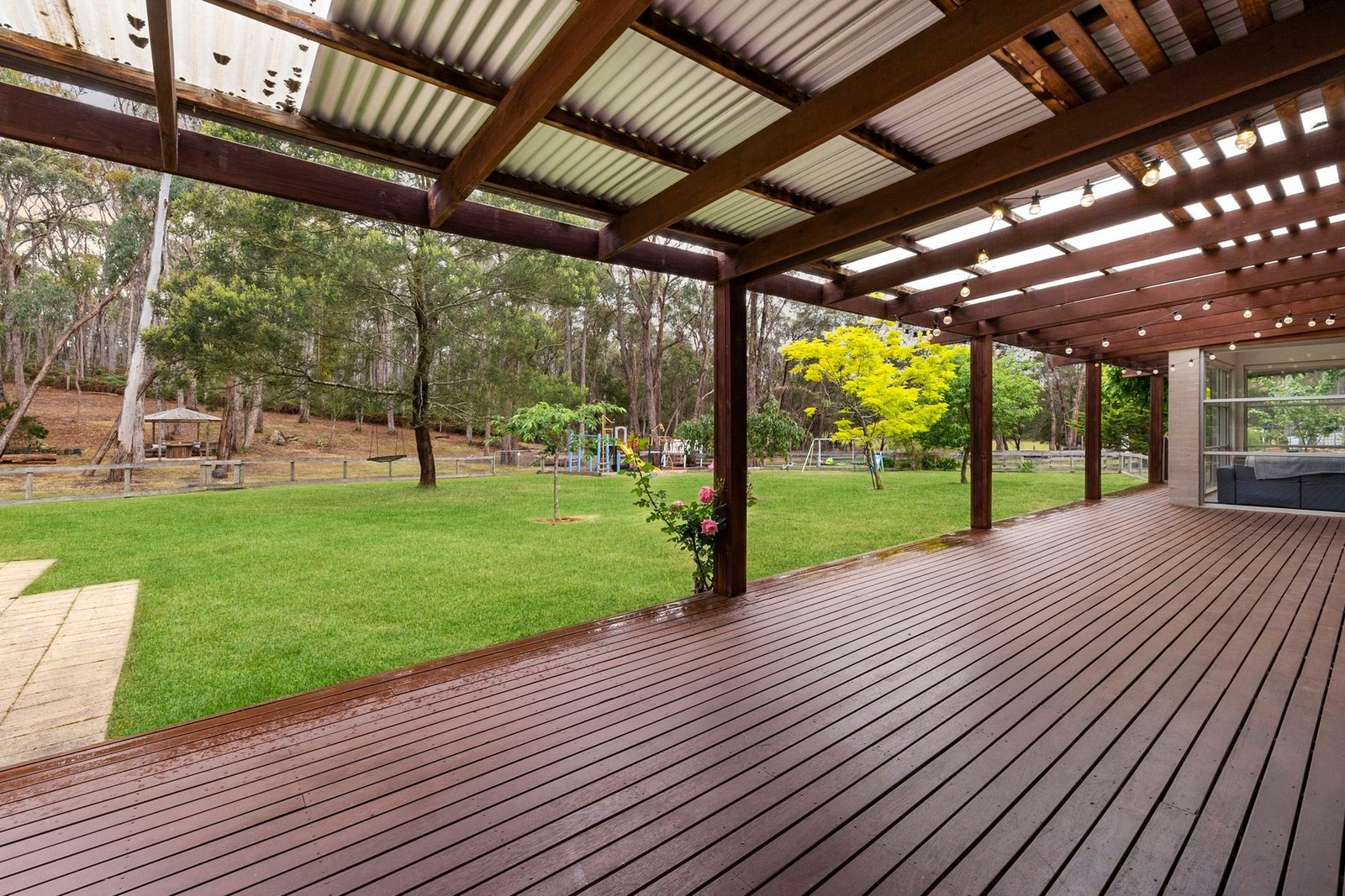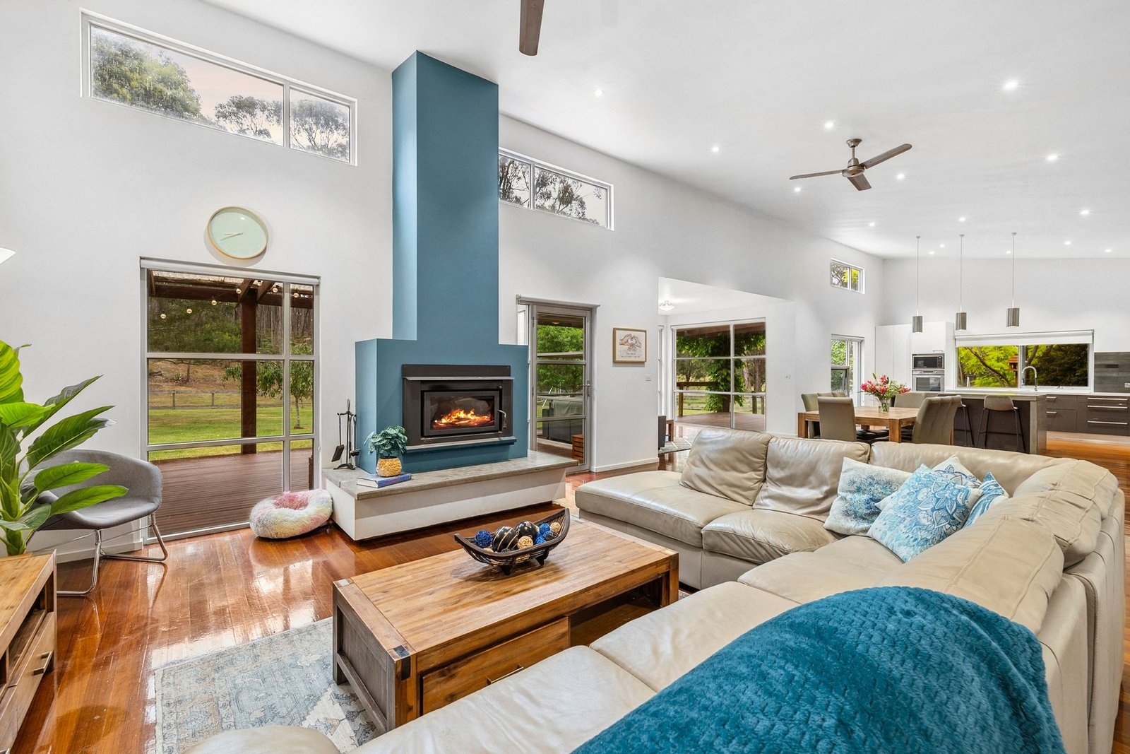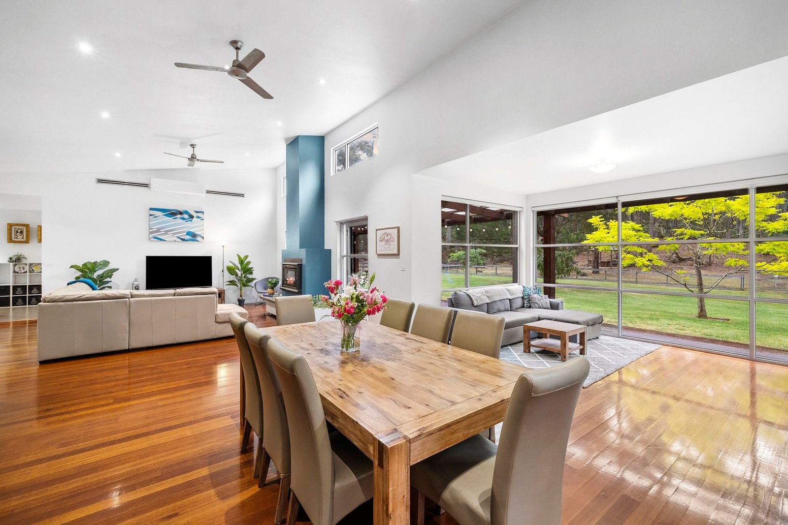 The property’s features extend outside, where undercover alfresco decking provides the ideal space for entertaining against a scenic rural backdrop. Three paddocks—two cleared and one with full bushland and enhanced by a dam —offer endless outdoor possibilities and add natural beauty and functionality to the land.