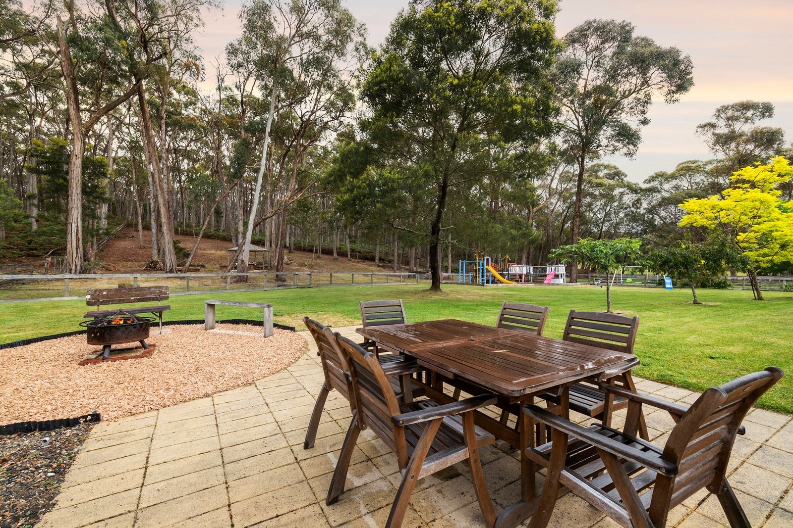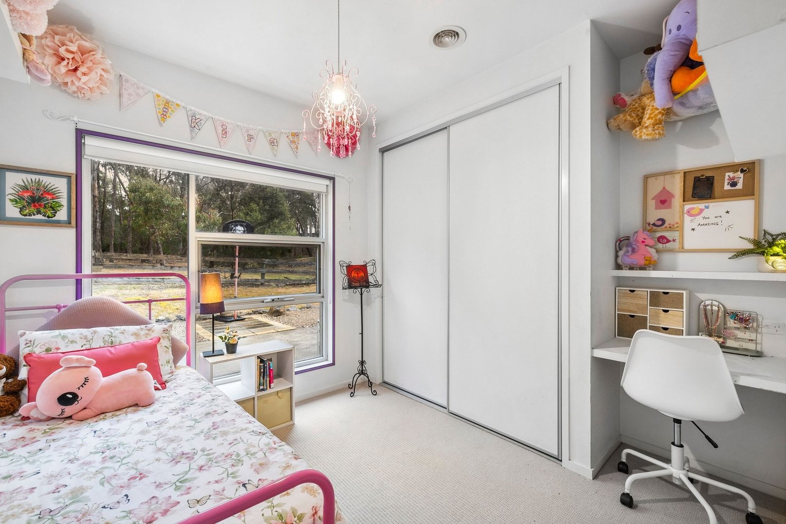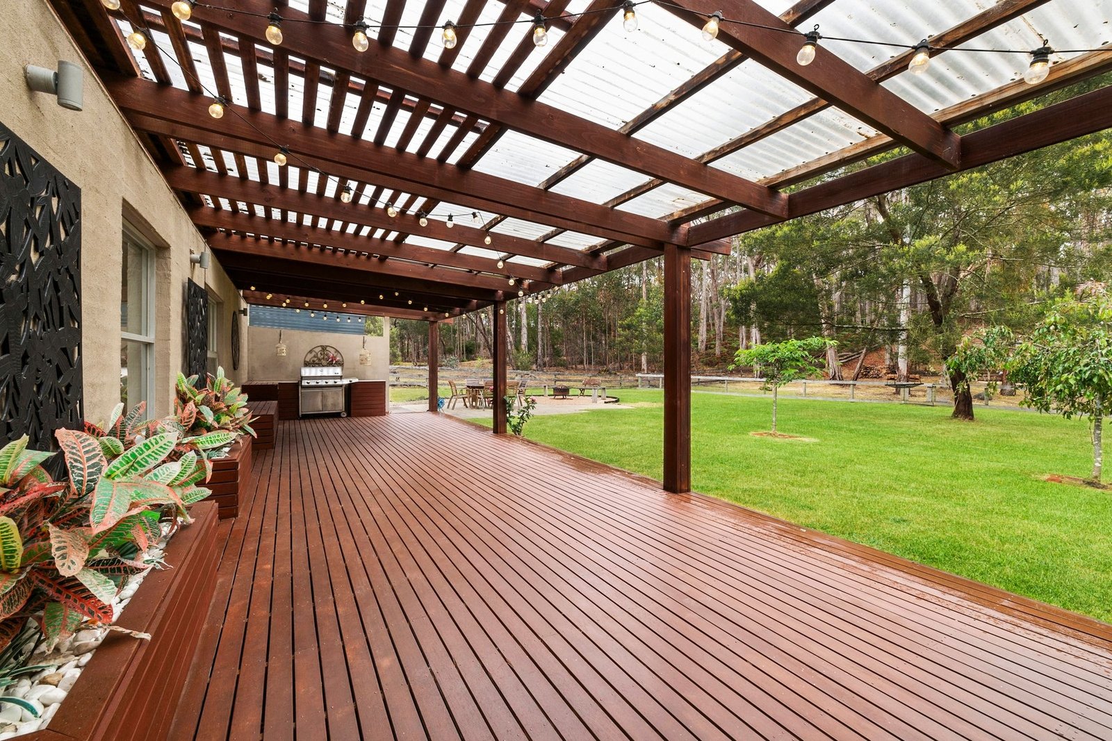 The property’s features extend outside, where undercover alfresco decking provides the ideal space for entertaining against a scenic rural backdrop. Three paddocks—two cleared and one with full bushland and enhanced by a dam —offer endless outdoor possibilities and add natural beauty and functionality to the land.