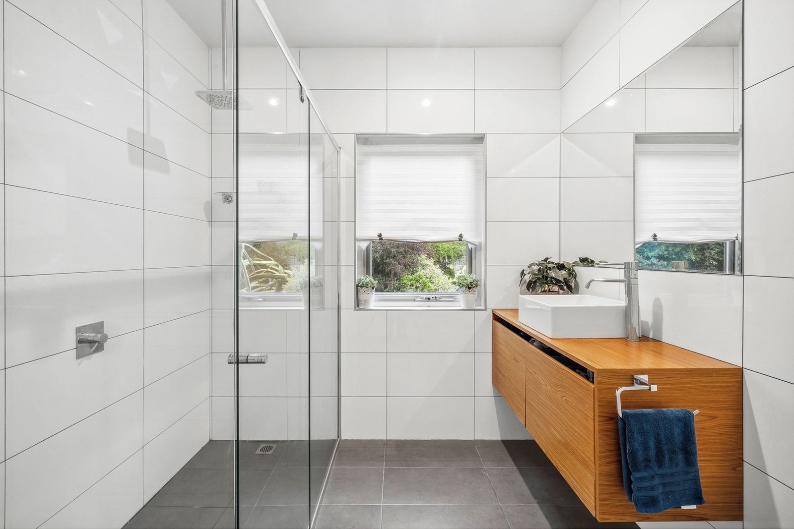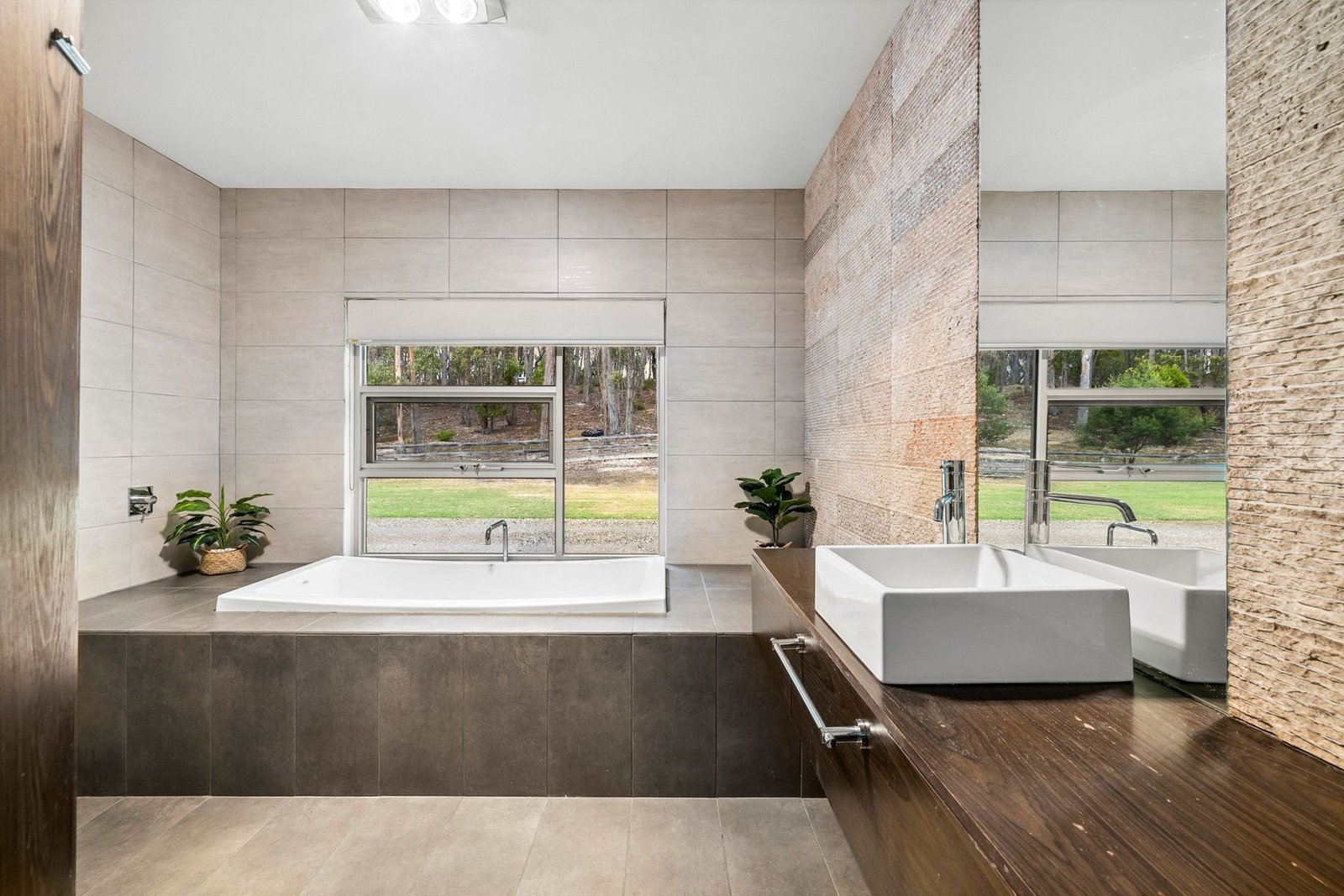 Warm, bright and inviting, the home features a sunroom section off the main living area, along with wood fire heating, split systems, and a ducted transfer system to ensure comfort in every season. A spacious rumpus room, complete with its own split system, serves as a kids’ playroom or additional living space, while a convenient separate powder room and main bathroom elevate everyday living. The central family bathroom offers high end luxury with floor-to-ceiling feature tiles, large bath, and an oversized shower—all easily controlled by an electric keypad.