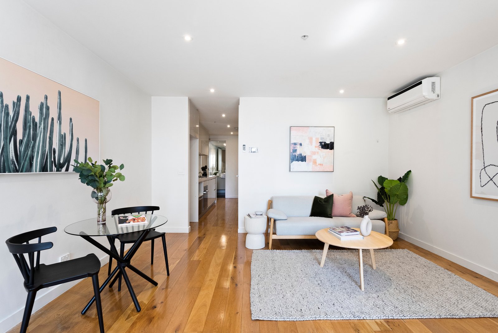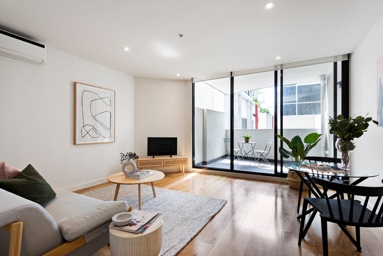A stunning architectural presence creates a sophisticated introduction to the luxurious spaces displayed by this elite beachside apartment, ideal for those in search of low-maintenance living and the ultimate lifestyle convenience. Masterfully crafted to impeccable standards and enhanced by designer aesthetics, natural light and timber floors create a sense of vibrancy throughout the spacious open-plan living/dining environment, accompanied by a striking, crisp-white kitchen flaunting stone surfaces and quality appliances. Finished to premium standards with a comfortable bedroom fitted with BIRs, chic bathroom, entertaining balcony, reverse-cycle heating/AC, secure intercom entry, lift access and basement car space. Positioned in a Blue-chip locale, a heartbeat to renowned cafes, cosmopolitan restaurants, the beach, bustling Bay Street, buses and the light rail. Market entrants, downsizers and investors can also enjoy a leisurely stroll along the sand, down the Bay Trail or through the serenity of Lagoon Reserve.