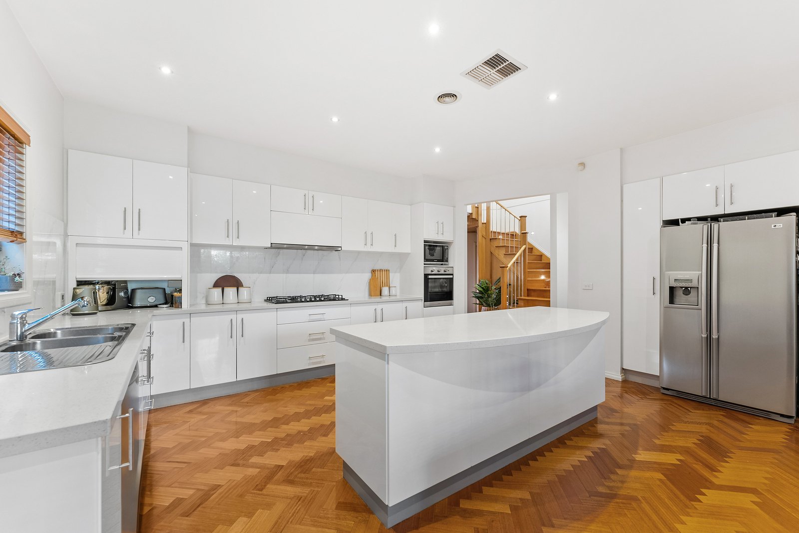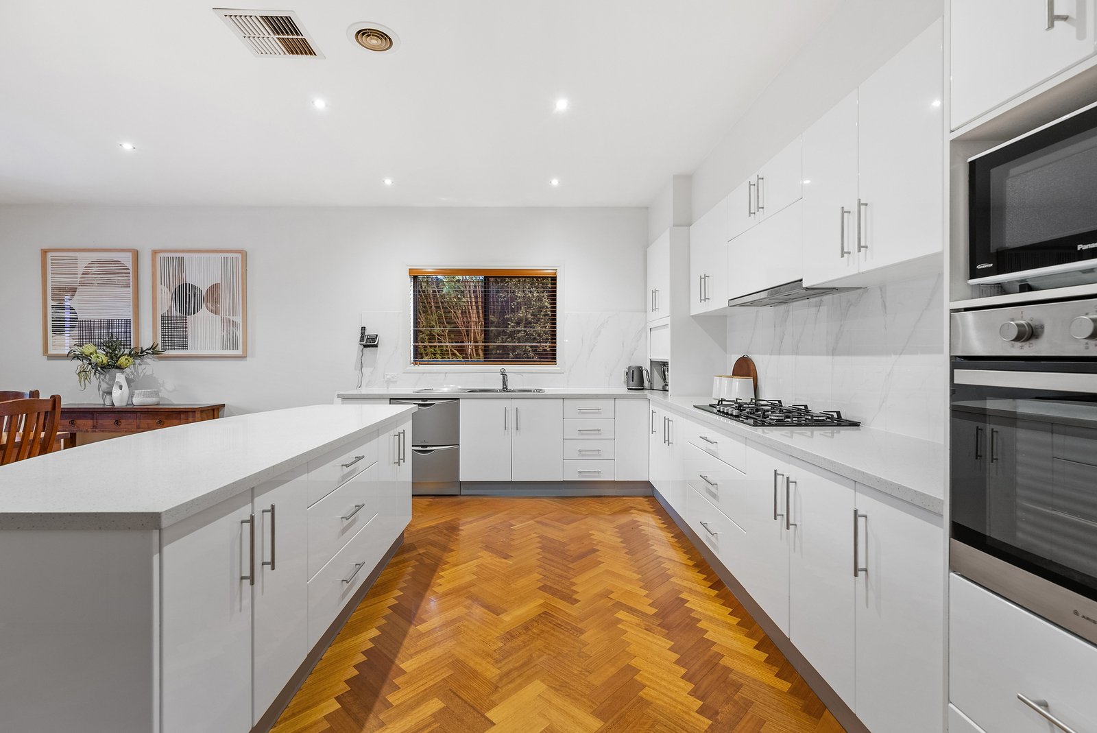 The fully renovated stone kitchen is a chef's dream, boasting premium stainless-steel appliances, including dual Ariston ovens, a gas cooktop, and a Fisher & Paykel dishwasher. The sleek island bench and abundant concealed storage add both style and functionality. Outside, the covered alfresco deck is an entertainer's delight, surrounded by low-maintenance wrap-around concrete spaces, lush lawns, and beautifully established gardens - a haven for children and pets.