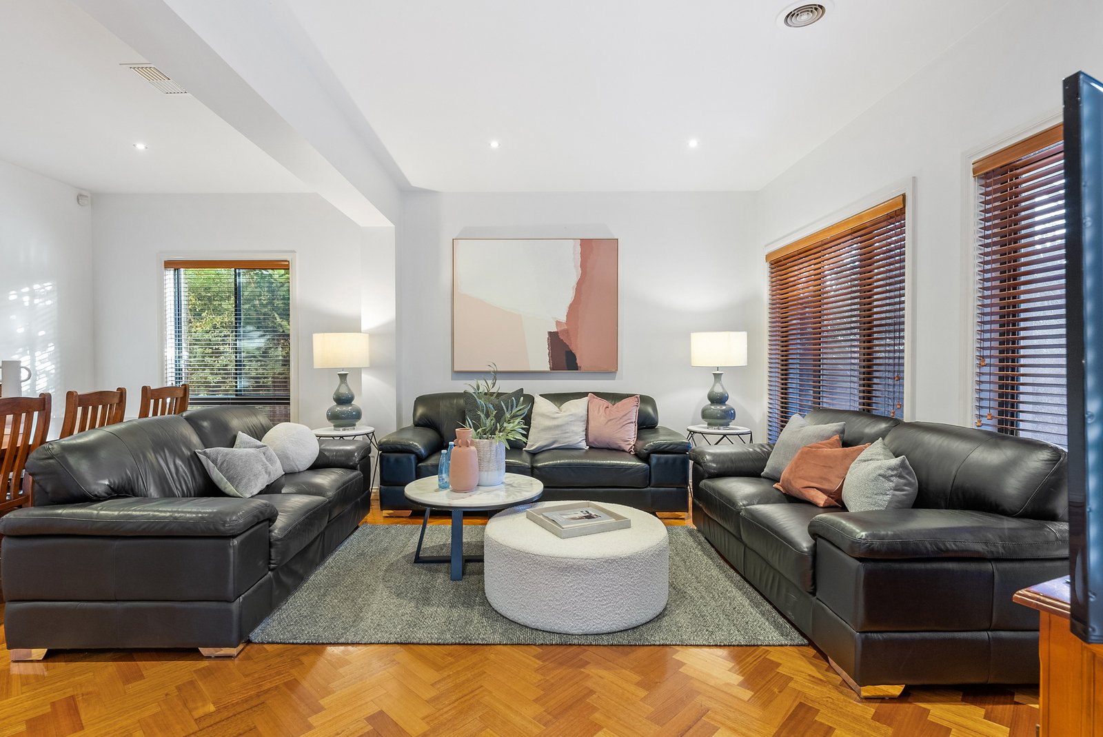 Step inside and be captivated by the warmth of parquetry flooring that flows through the formal living and dining rooms, where abundant natural light creates an inviting space to entertain or relax. A versatile ground-floor bedroom with a private ensuite provides a flexible option for guests or multi-generational living. Toward the rear, the heart of the home unfolds with an expansive open plan living and dining area, seamlessly connected to a cozy family zone with a fireplace.
