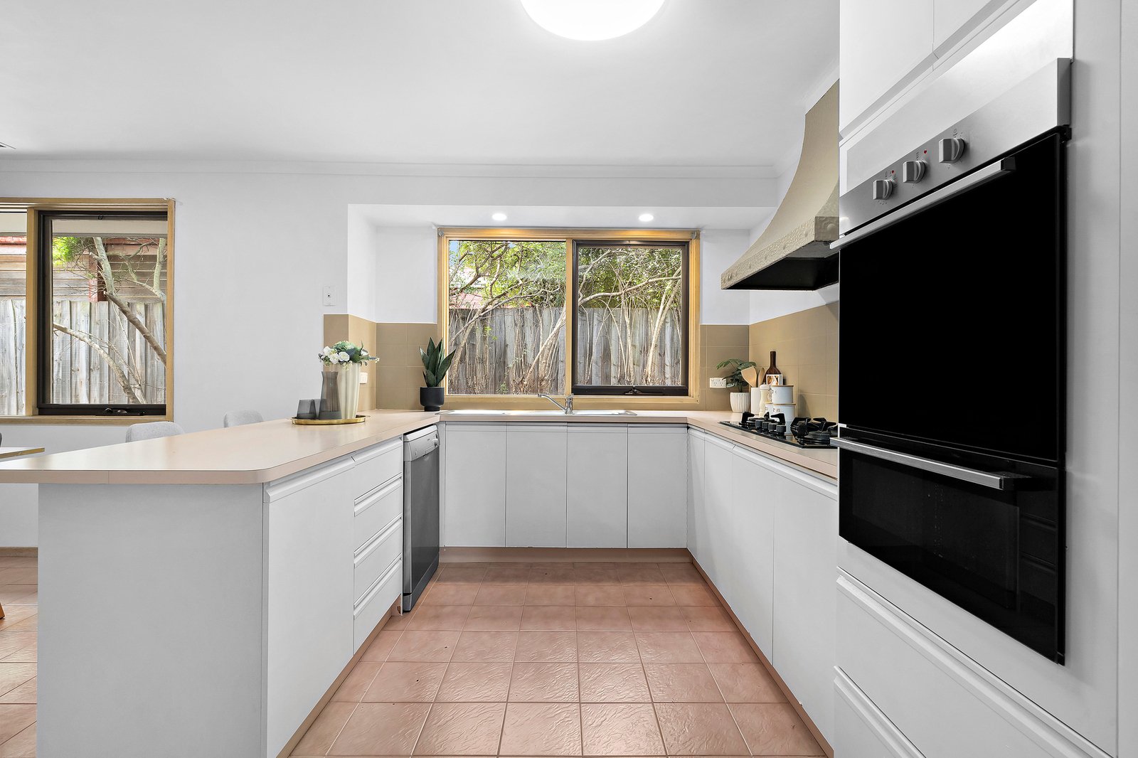 A spacious kitchen features a Bosch dishwasher, gas cooktop and plenty of cupboard storage.