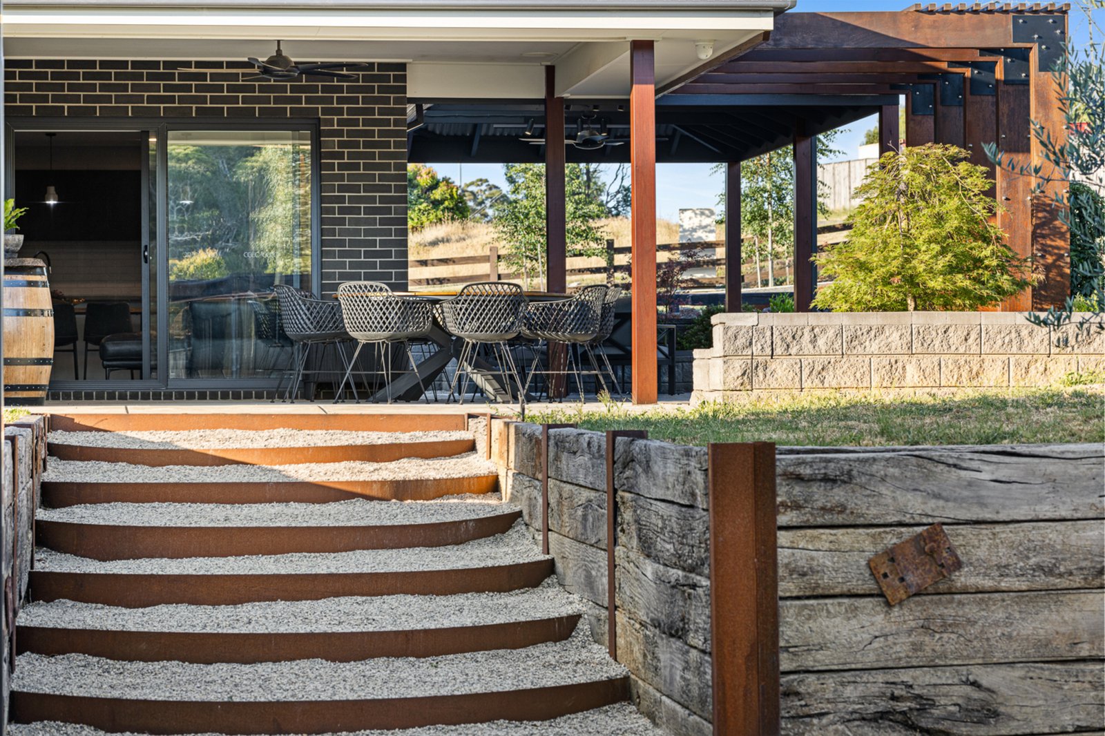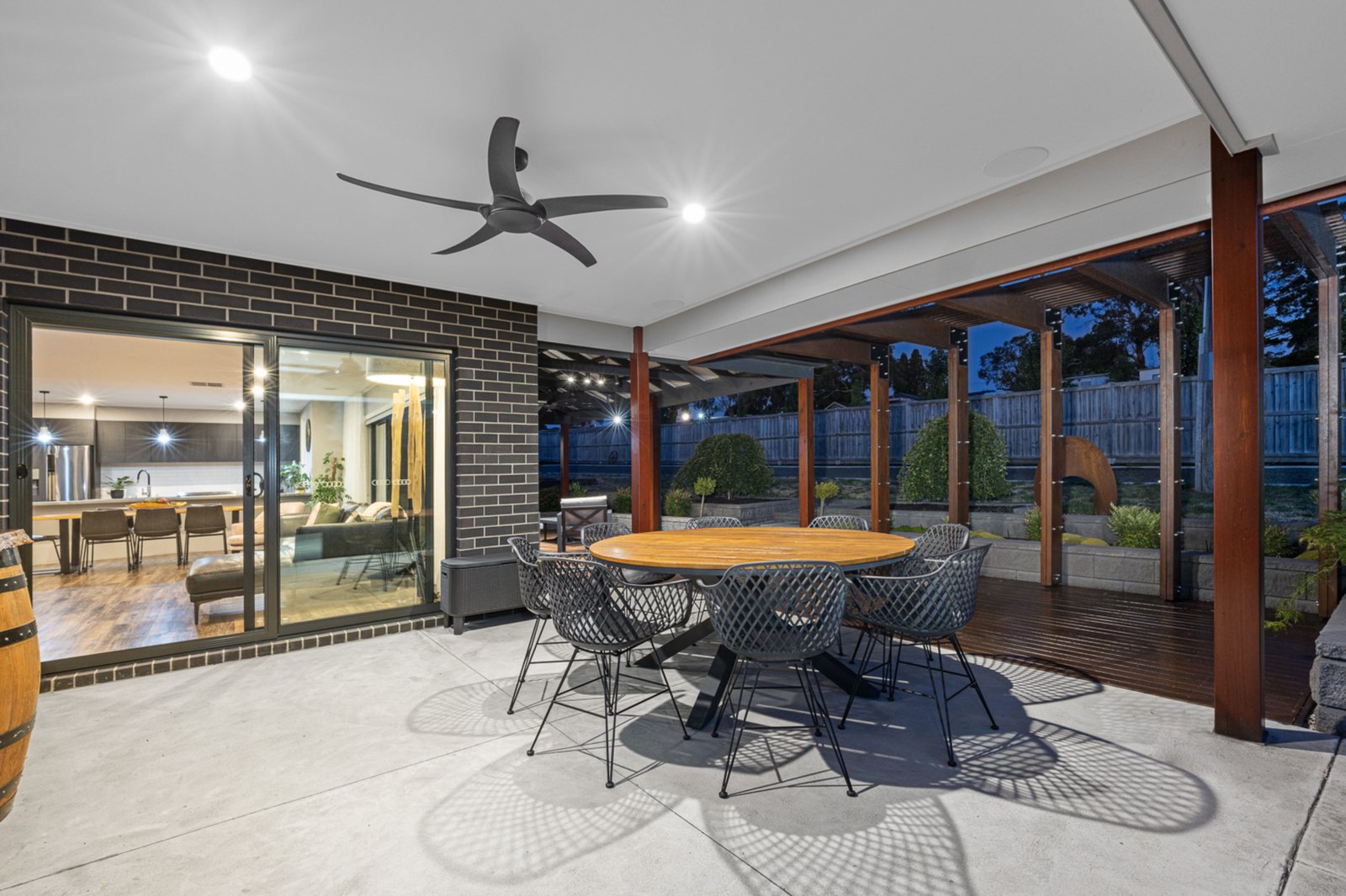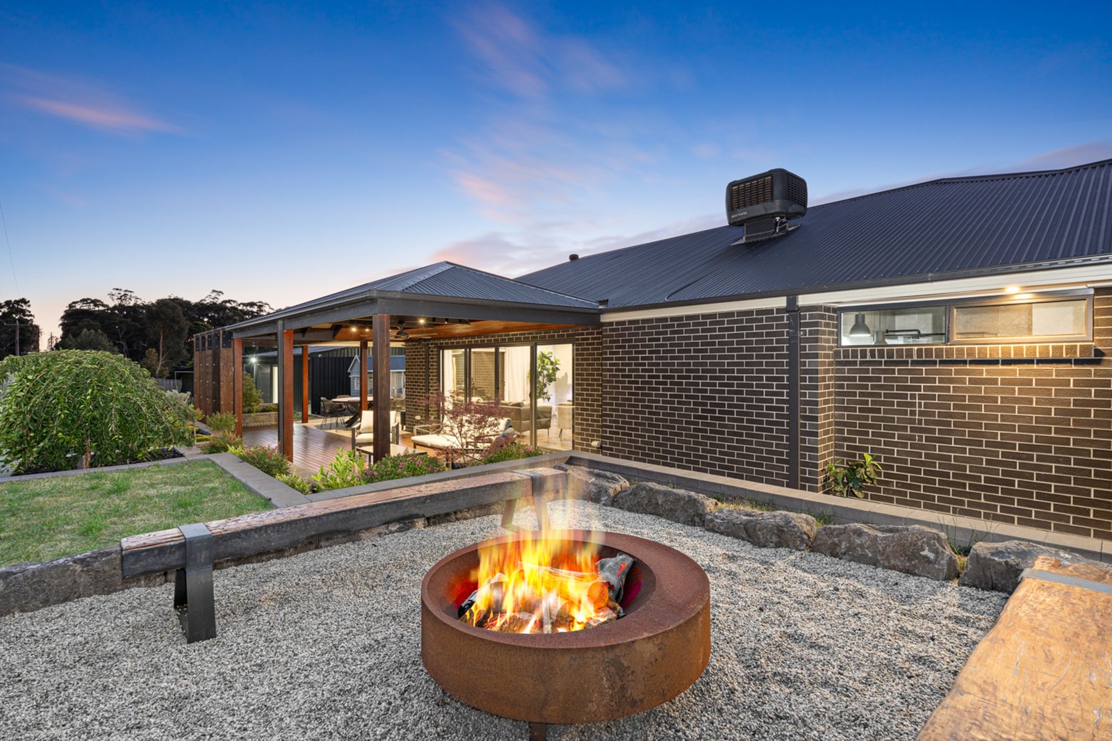 Beyond the home, the property offers exceptional outdoor features, including a double lock-up garage and a massive 14m x 8.7m shed. The shed includes three roller doors, a concrete floor, power, and a separate area ideal for a gym or studio with its own split system air conditioner. Entertain with ease in the undercover alfresco area, extended with a decked entertaining space, or relax by the fire pit area. The landscaped gardens are equipped with an irrigation system and enhanced with ample outdoor lighting, making maintenance and enjoyment a breeze.