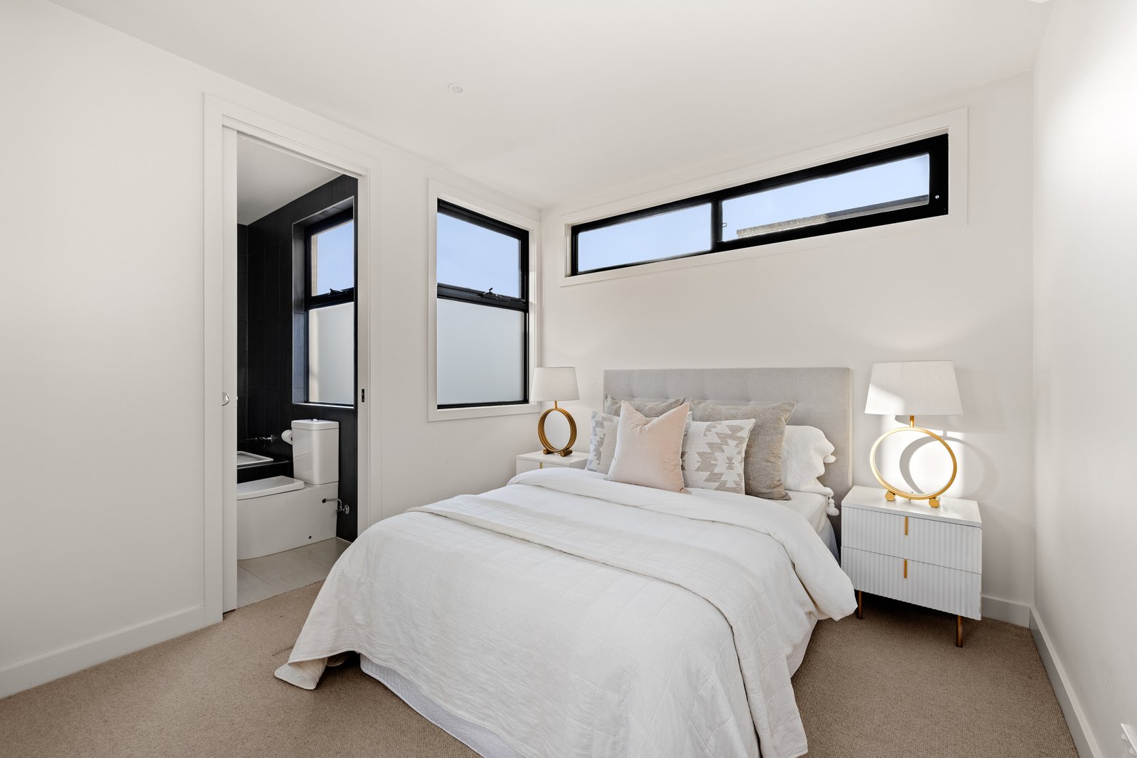 Upstairs, a central retreat leads to the grand master suite, a serene haven featuring a stylish ensuite, oversized proportions, and street-facing views. Two additional bedrooms with built-in robes share a chic central bathroom, while the fifth bedroom enjoys its own ensuite for added privacy and convenience.