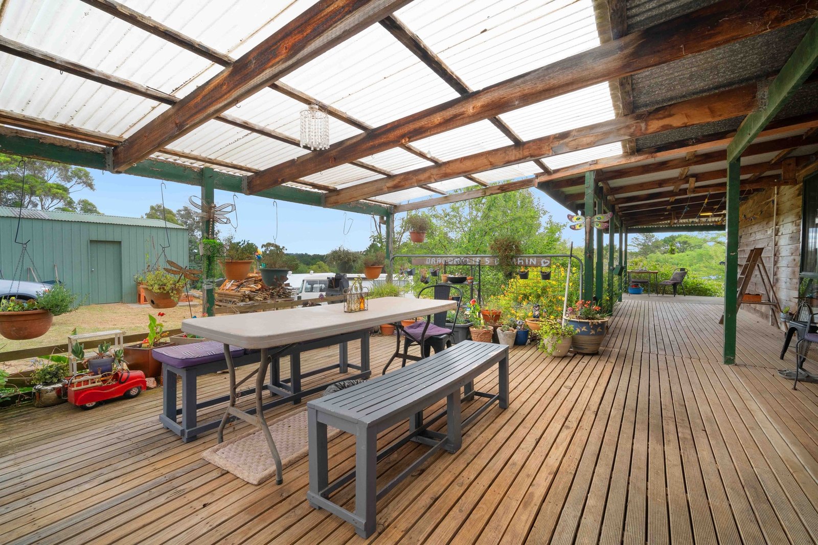 The home includes spacious open plan, offering plenty of room to relax or entertain. A wood heater, split system, and ceiling fans ensure comfort in every season. The wraparound veranda and deck create a seamless indoor-outdoor flow, perfect for soaking in the serene views or entertaining guests.
