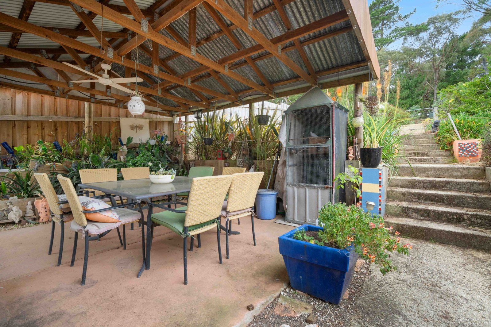 Outside, a large shed with a concrete slab and power caters to all your storage or workshop needs. The advantage of dual access from the rear lane also, is practical and perfect for storing caravans, Boats Trailers etc.