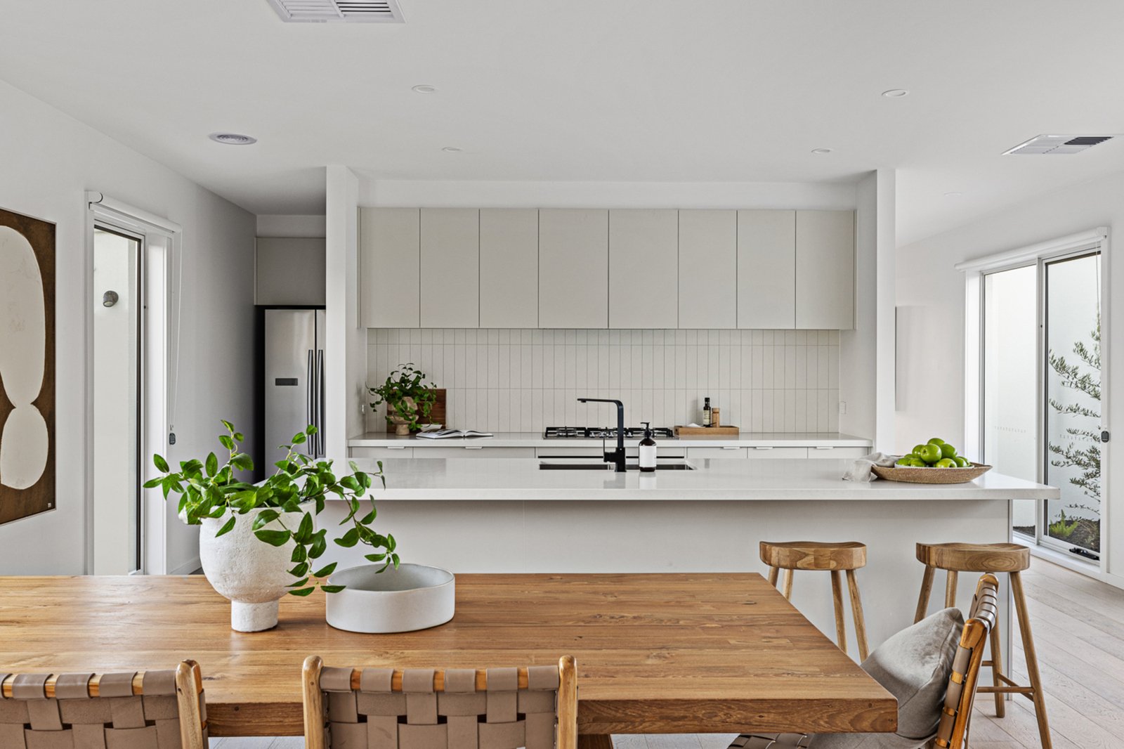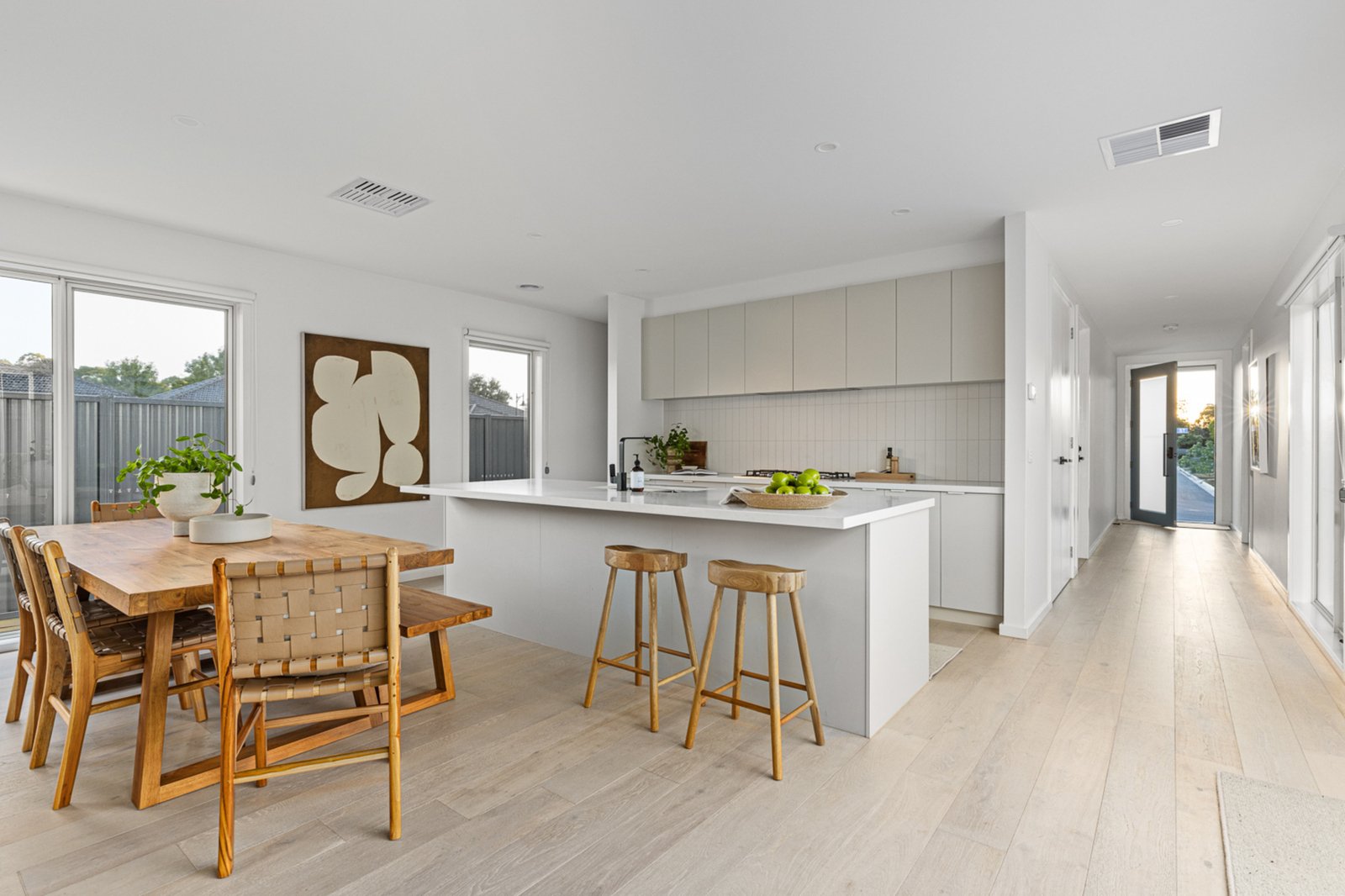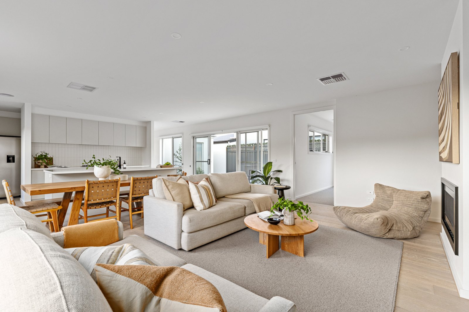 This immaculate one-level home offers versatile living options, with the choice of 4 bedrooms and 1 living area, or 3 bedrooms and 2 living areas. Currently operating as a successful Airbnb, it presents an excellent investment opportunity, while also being ideal for an owner-occupier seeking a brand new, low-maintenance lifestyle. Inside, you'll find the spacious living area complete with a gas log fire, perfect for relaxation or entertaining. The kitchen boasts a massive butler’s pantry, sleek stone benches, premium appliances, and square set cornices for a modern touch. The open-plan layout seamlessly flows into the dining area, providing a bright and airy space for family meals.