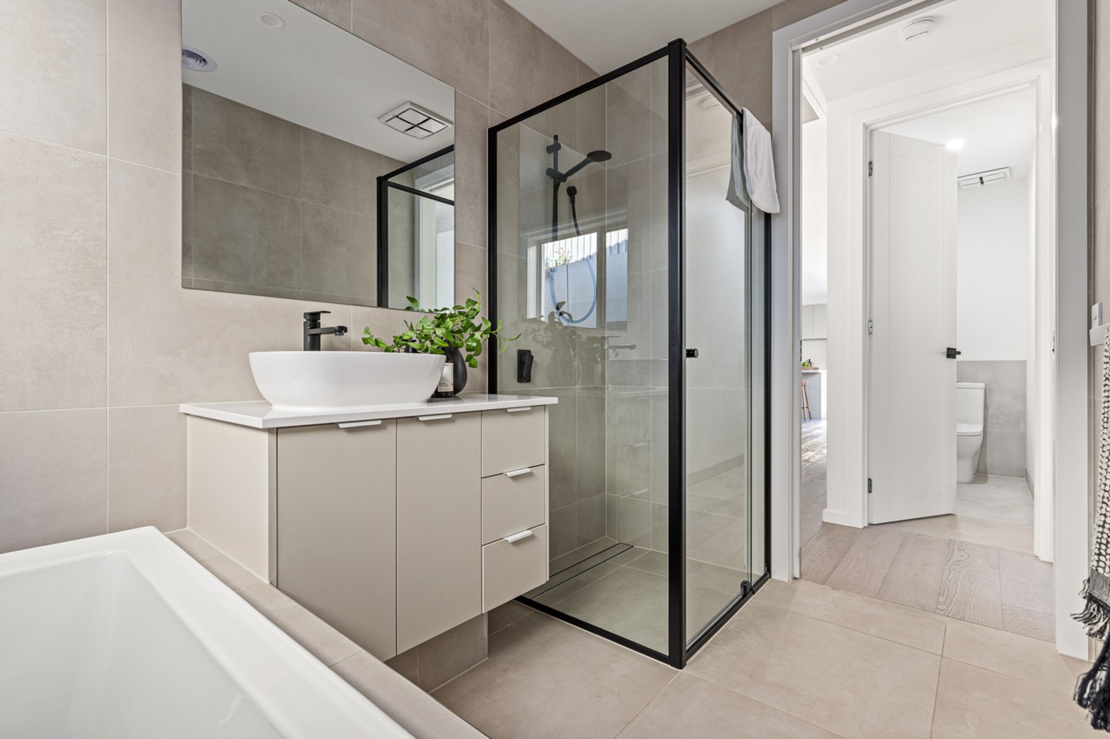 The home features four well-sized bedrooms, all designed with comfort and practicality in mind. The master suite serves as a peaceful retreat, while the other bedrooms offer generous proportions with plenty of storage. Both bathrooms are beautifully appointed with floor-to-ceiling tiles for a luxurious feel. With gas central heating and evaporative cooling, you’ll enjoy year-round comfort.