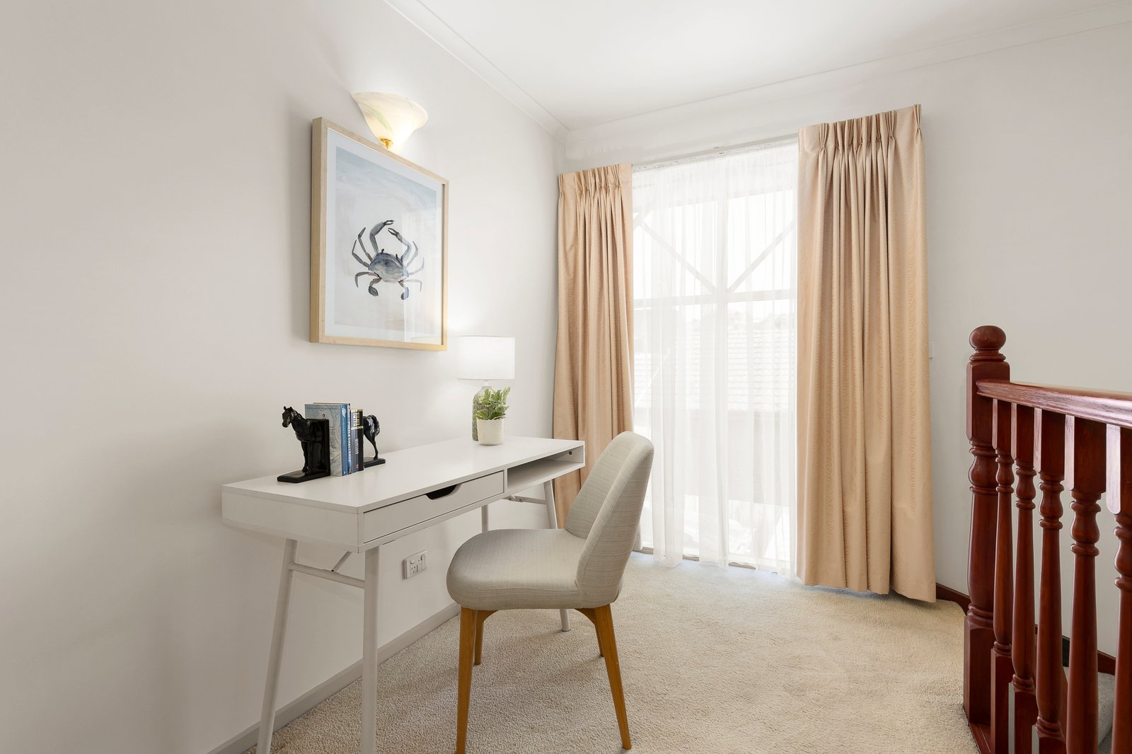 Stylish updates throughout ensure a modern setting with floating floors, stone top bathrooms with twin basins and open rainfall showers and a large galley kitchen appointed with quality appliances including a 90cm cooker and Miele dishwasher.