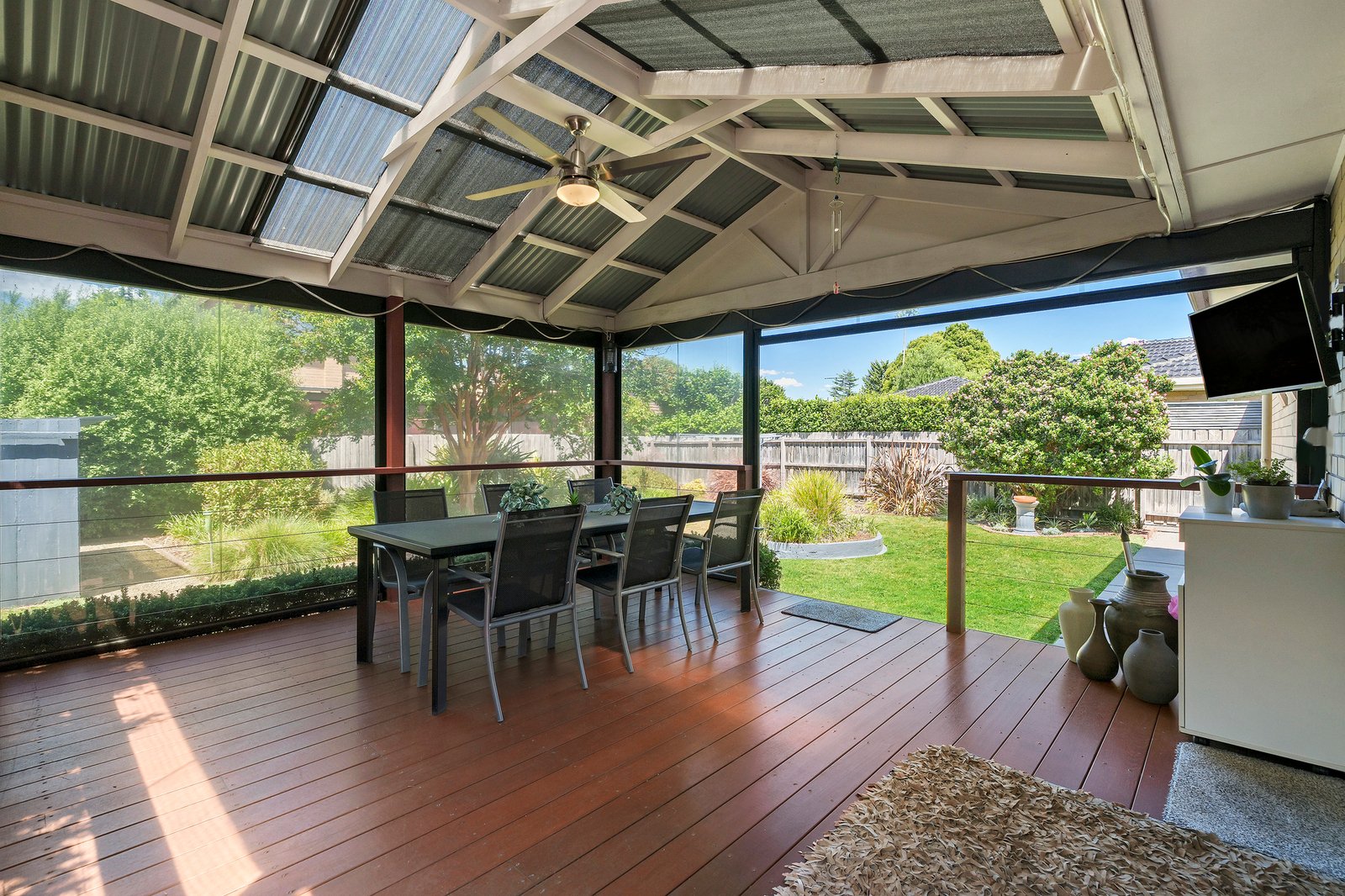 Original owners having lovingly maintained and upgraded their family sanctuary, adding new tinted windows, a powerful Daikin heating cooling system, and a fully featured outdoor room with its own blinds, ceiling fan and pitch-roof pergola.