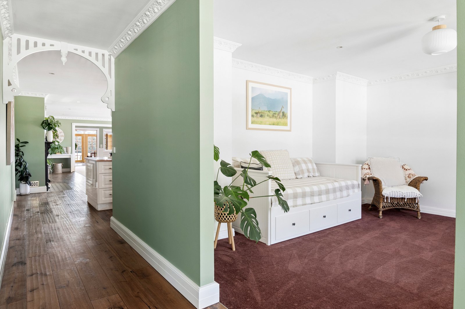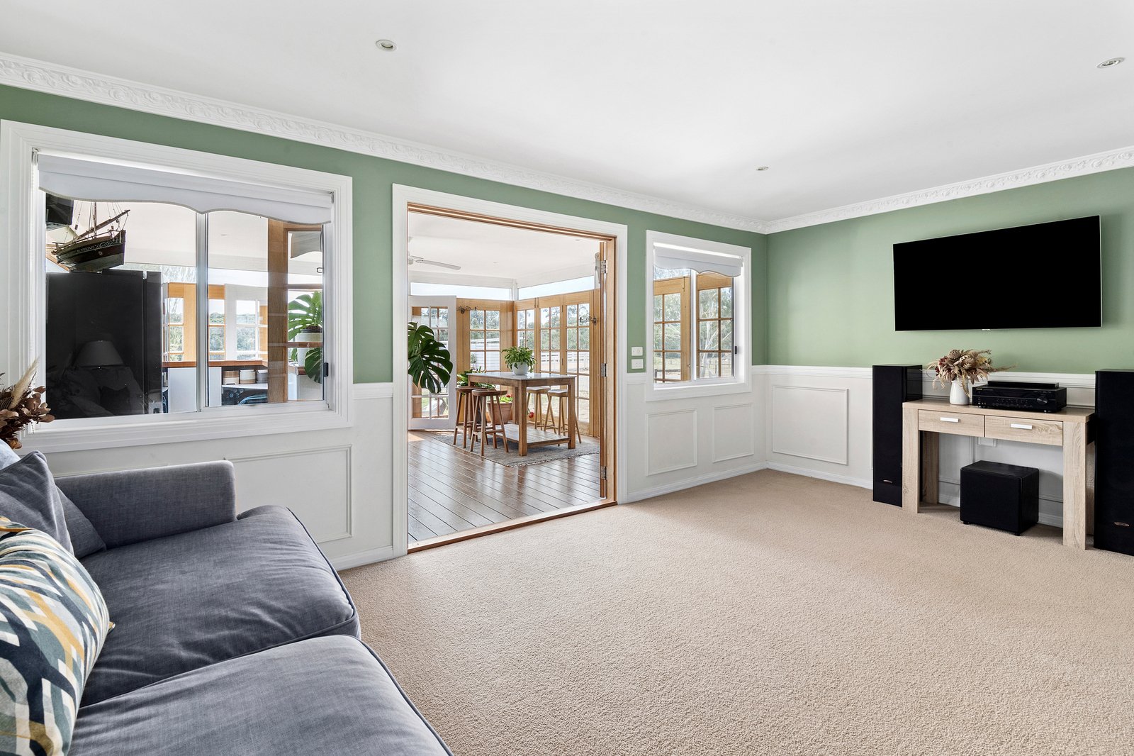 French doors frame the north-facing bar conservatory, opening to welcome cross-ventilation and immerse every gathering in natural light. The unhurried rhythm of the home spills toward the heated pool, a shimmering centrepiece for outdoor leisure overlooking the equestrian facilities. Four generously sized, well zoned bedrooms include main with an ensuite and walk-in robe, while the central family bathroom and powder room evoke old-world charm with a claw-footed bathtub.