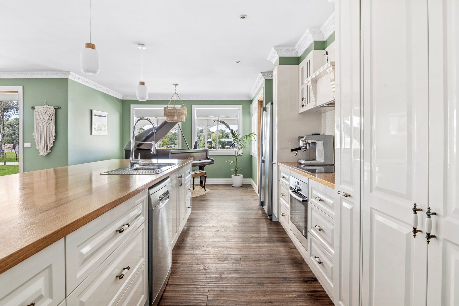 Spanning approximately five acres, a weeping willow-lined bridge crossing unveils an impeccably presented, expansive period style homestead, where the morning sun bathes the wraparound iron lacework verandah in golden light, the scent of the garden lingers, and kookaburras call from the treetops.