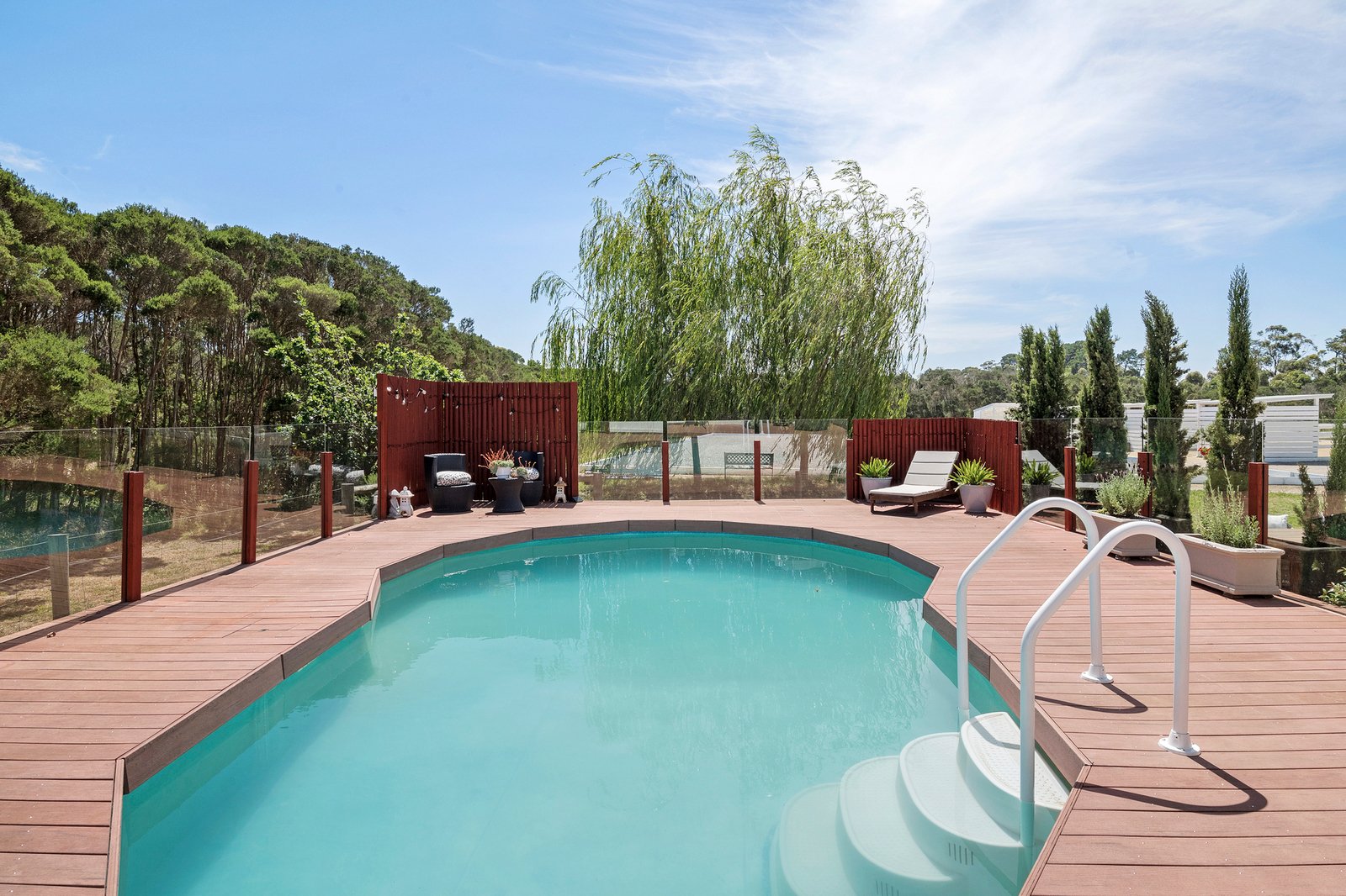Expanding the estate’s appeal is a newly constructed, architect influenced, two-bedroom 6.4 star energy rated cottage. Premium Bosch appliances elevate the open-plan kitchen, while a louvered alfresco terrace offers wide views over the acreage and captures the country air in all seasons. Adjoined by a whimsical winding creek lined with weeping willows and a freshwater spring, this remarkable estate sits within a thriving equestrian community, just 30 minutes from Boneo Park and 10 minutes to Balnarring Village. Despite its proximity to renowned cellar doors, breweries, pristine beaches, and esteemed schools, it remains a world apart in both feel and setting.