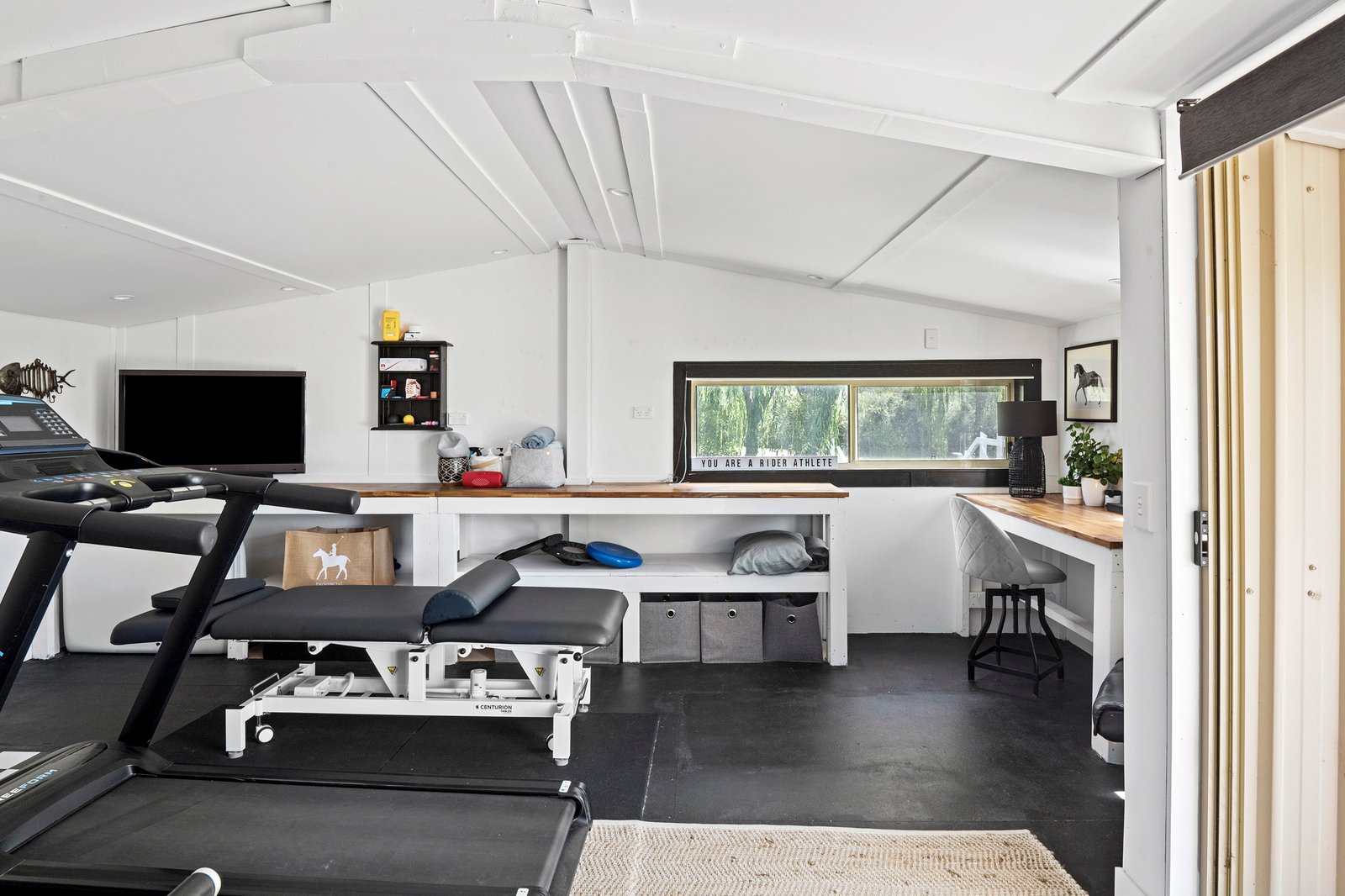 Vegetable gardens, a chicken coop, and over 150,000 litres of water storage with 10kW solar panels ensure self-sufficiency, complemented by extensive shedding for storage and equipment. A large workshop adjoining a double garage, and an additional multi-purpose space with plumbed in basin, heating/cooling present boundless possibilities for business, creative projects, or a home gym/pilates studio.
