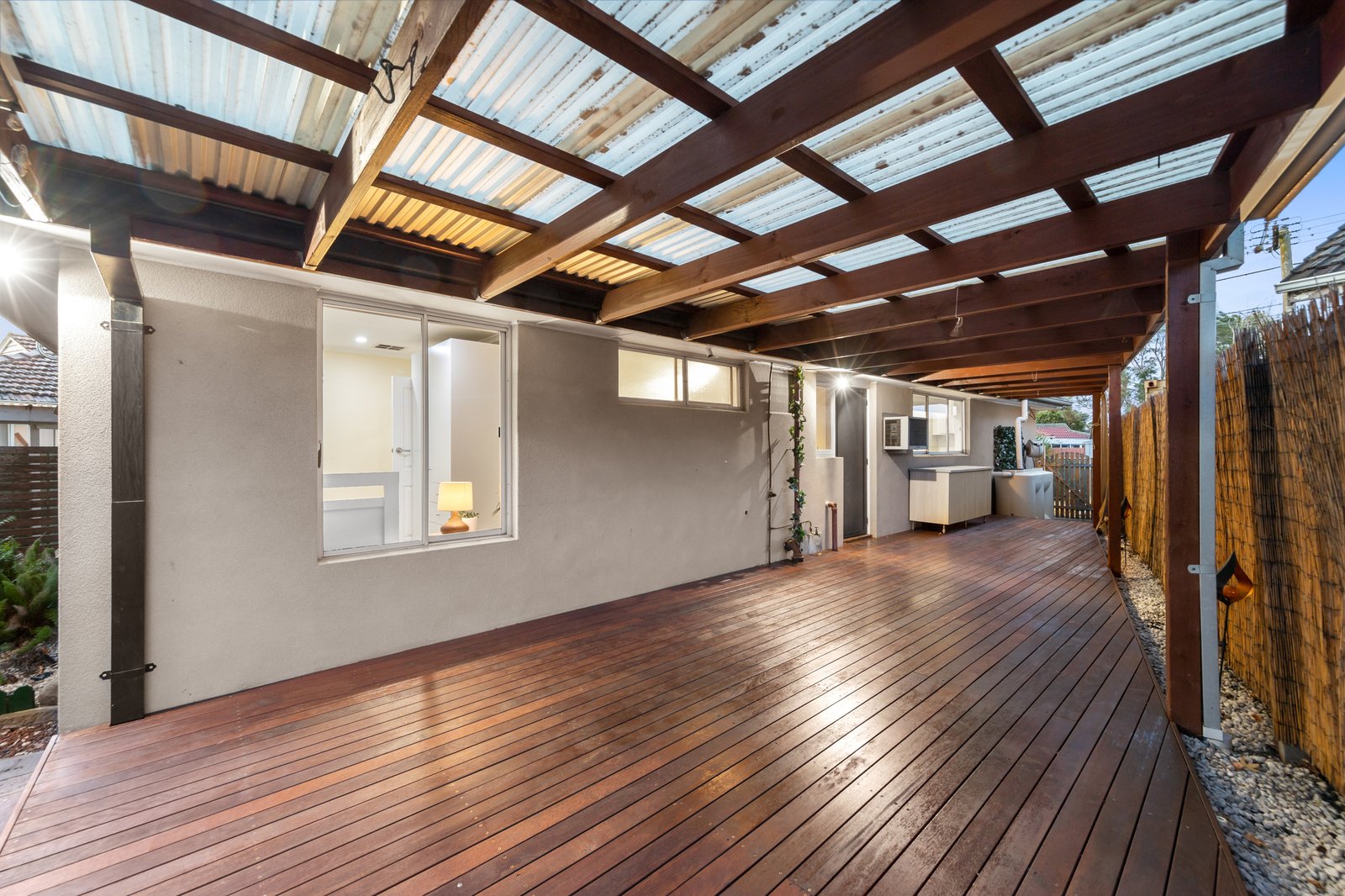 Behind its classic brick façade, a well-designed floor plan welcomes you with an inviting, light-filled living and dining area that seamlessly connects to an updated kitchen, complete with quality appliances, including an AEG oven, Technika gas stovetop, and Hisense dishwasher. A fully renovated central bathroom with a separate toilet ensures effortless daily living.