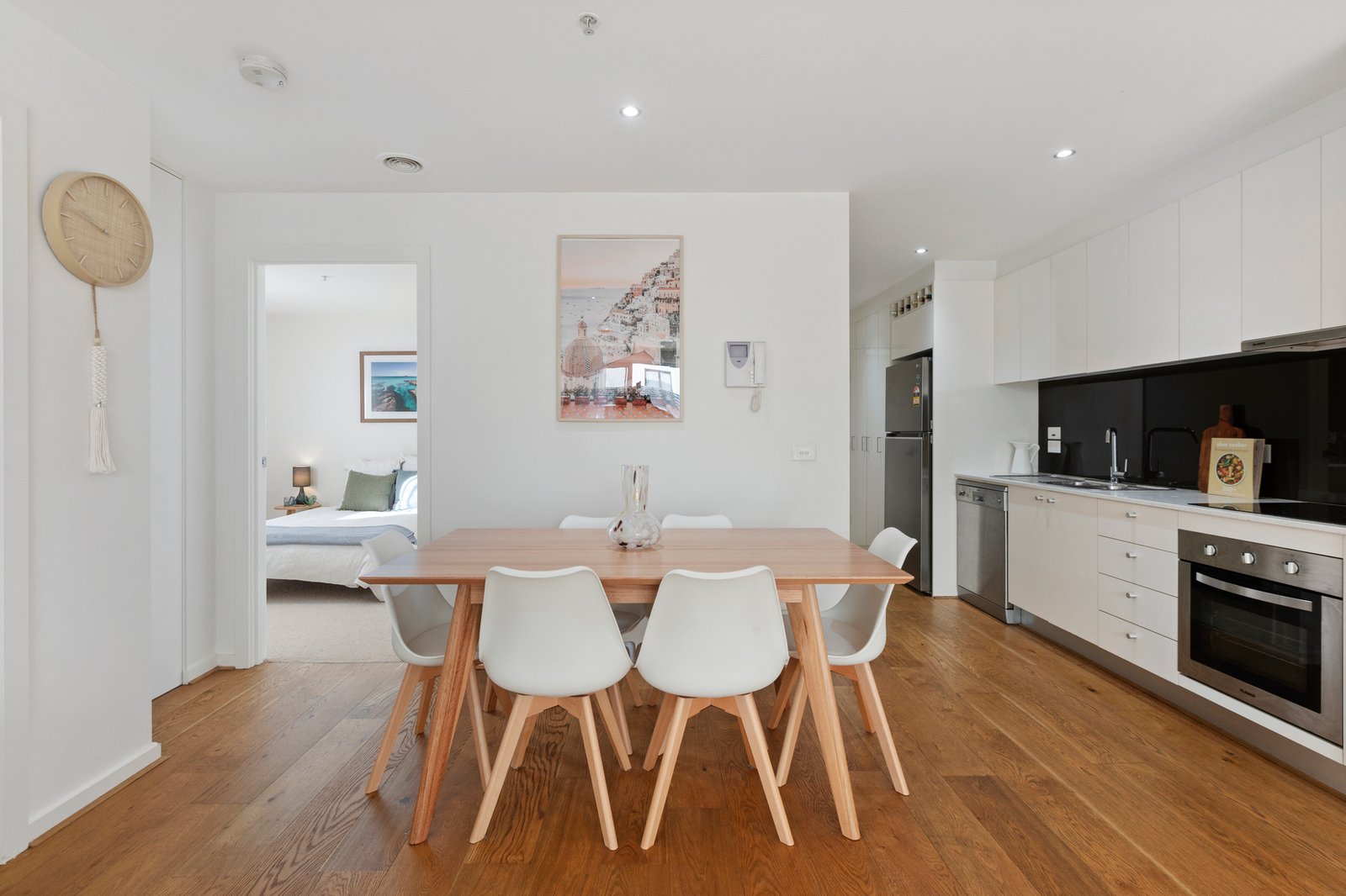 Positioned for the utmost ease and convenience, with the station, bus stops and shops all readily at hand, the first-floor apartment is an offering that will impress both discerning owner-occupiers and savvy investors. Filled with abundant natural light and enhanced by quality inclusions such as crisp stone surfaces, chic wide-board oak flooring, floaty sheer curtains and a private suntrap balcony, the spacious open plan accommodation comprises an expansive living/meals area, a sophisticated gourmet kitchen with quality stainless steel appliances and an ensuited master bedroom with mirrored built-in wardrobes and block-out blinds.