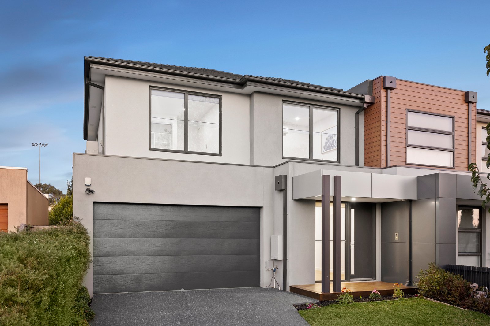 Designer detailed with cool stone benchtops (waterfall-edge for the kitchen and even for the laundry), warm wideboard Oak floors, and floor-to-ceiling bathroom tiling, this substantial home is individually climate-controlled with reverse-cycle air-conditioning to every room, and secured by video-intercom, alarm and a generous double auto-garage.