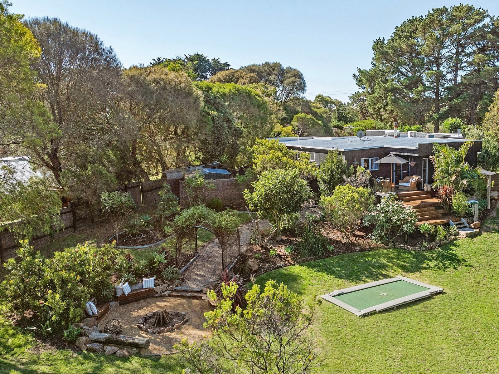 Modular vegetable boxes, a water tank, shedding, and expansive lawns further enrich the landscape, shared with red parrots and kookaburras, creating a natural playground where cricket matches unfold beneath endless skies and the ocean’s distant roar laces the air.