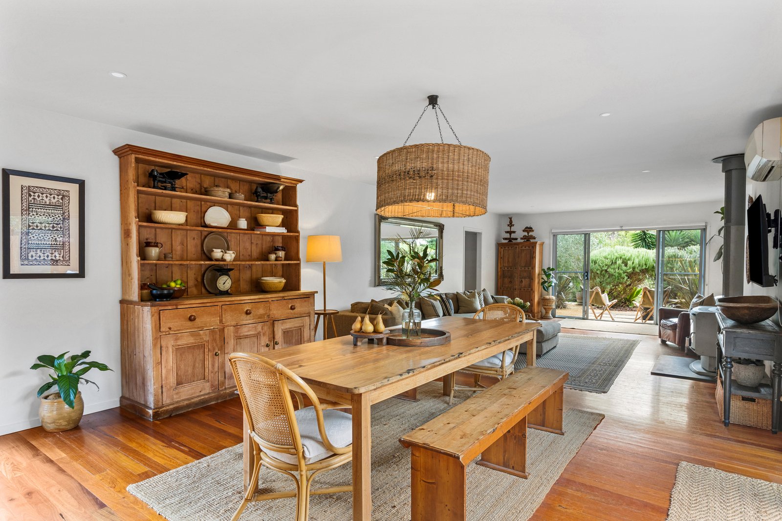 Stone surfaces, premium stainless-steel appliances, a 900mm gas cooktop, a double dishwasher, and a large island form a beautifully composed gourmet kitchen, flowing across to the north-facing dining area and two lounges drawn together by the warmth of a wood fire atop polished blackbutt flooring.