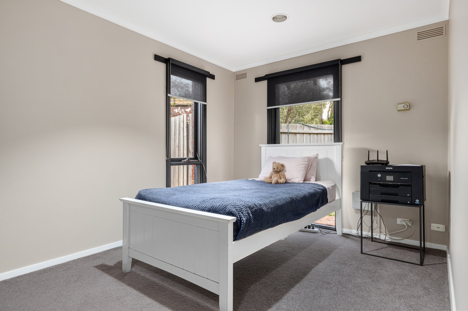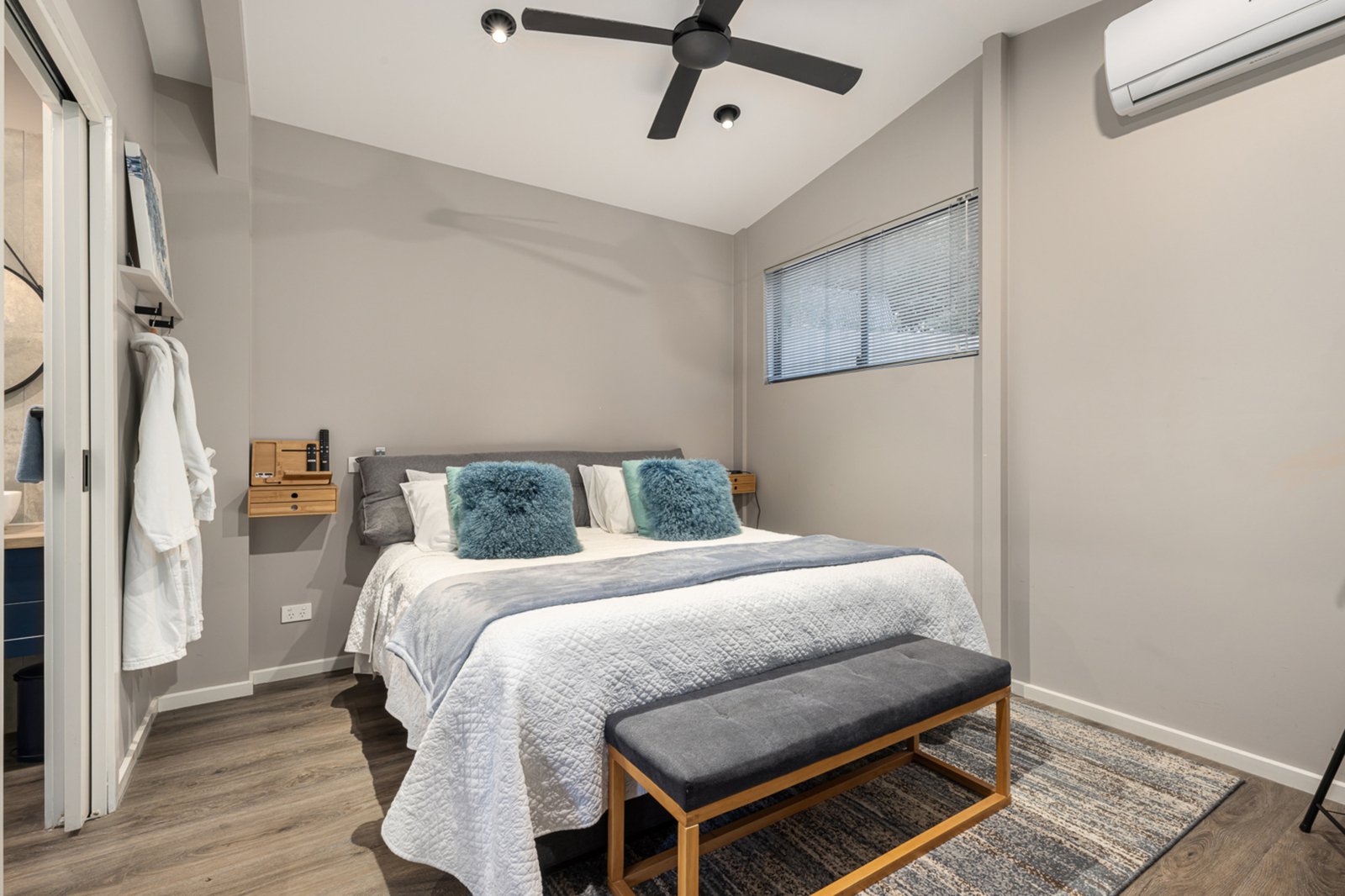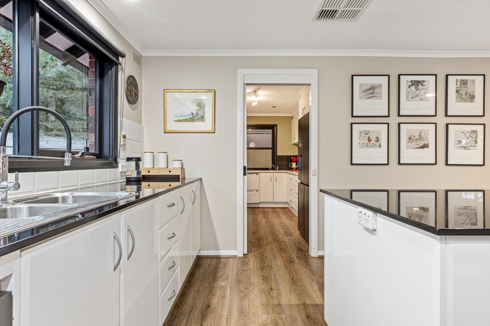 The main residence is thoughtfully designed, featuring four bedrooms and two spacious living areas with one of the living areas being an optional 5th bedroom. A raked ceiling entry leads you through to the heart of the home, where an open-plan kitchen and dining area boasts a massive island bench, butler’s pantry, and integrated laundry. The master retreat occupies the entire upper level, complete with a renovated en-suite, walk-in robe, private balcony, and a study/sitting area. Downstairs, two of the remaining bedrooms enjoy courtyard access via sliding doors, while a stylish family bathroom features a spacious open shower and floor-to-ceiling tiles with concrete benchtop. The formal living zone offers a warm, welcoming feel with a built-in bar, gas log fire, and soaring raked ceilings, while a third living space or optional fifth bedroom provides additional flexibility. The home is equipped with central heating and evaporative cooling for year-round comfort. Outside, a spacious undercover entertaining area with a wood fireplace creates the perfect setting for family BBQs, gatherings, or relaxing evenings. An enclosed spa area adds a luxurious touch and is perfect for guests or personal enjoyment.
