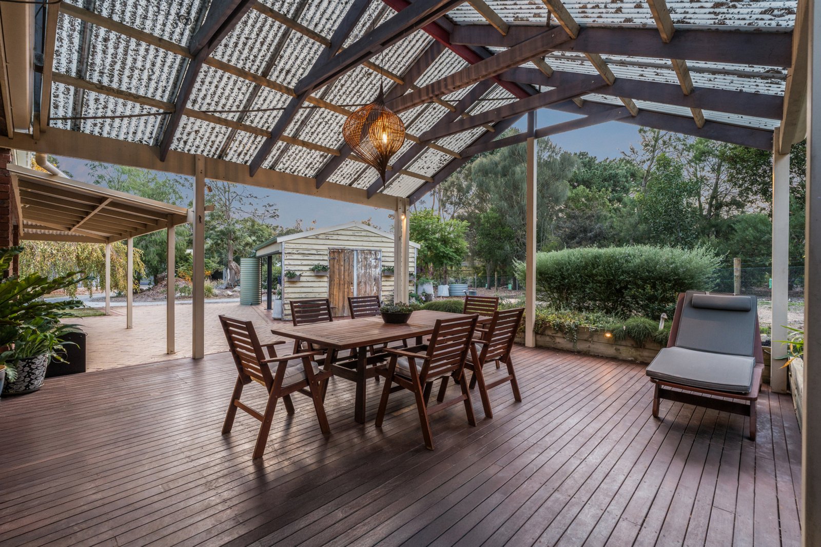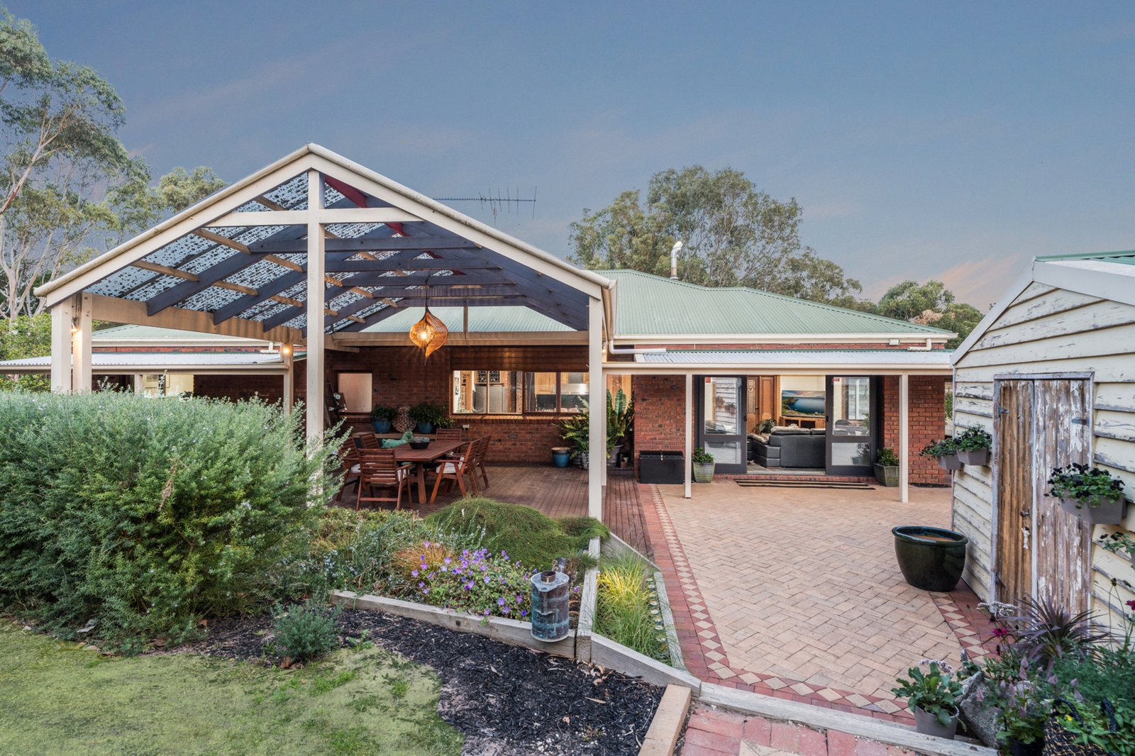 There are two outdoor entertaining spaces: a covered deck perfect for year-round use, and a pergola ideal for relaxed gatherings under the open sky.