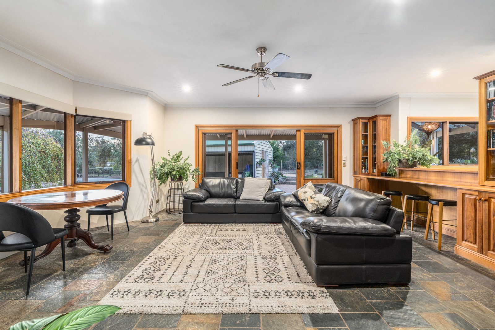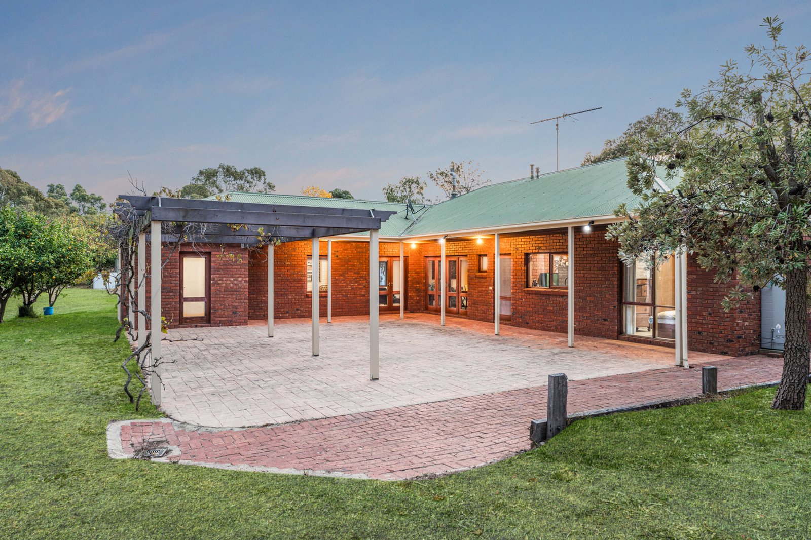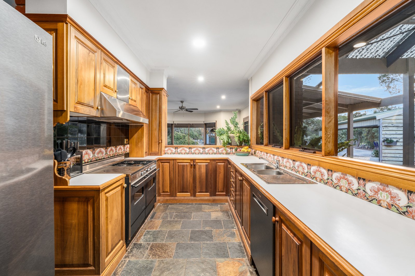 Built with sustainability in mind, this double-brick home offers excellent energy efficiency. Inside, slate floors and exposed brick walls add warmth and character, while a wood fire invites you to cozy up during the cooler months.
