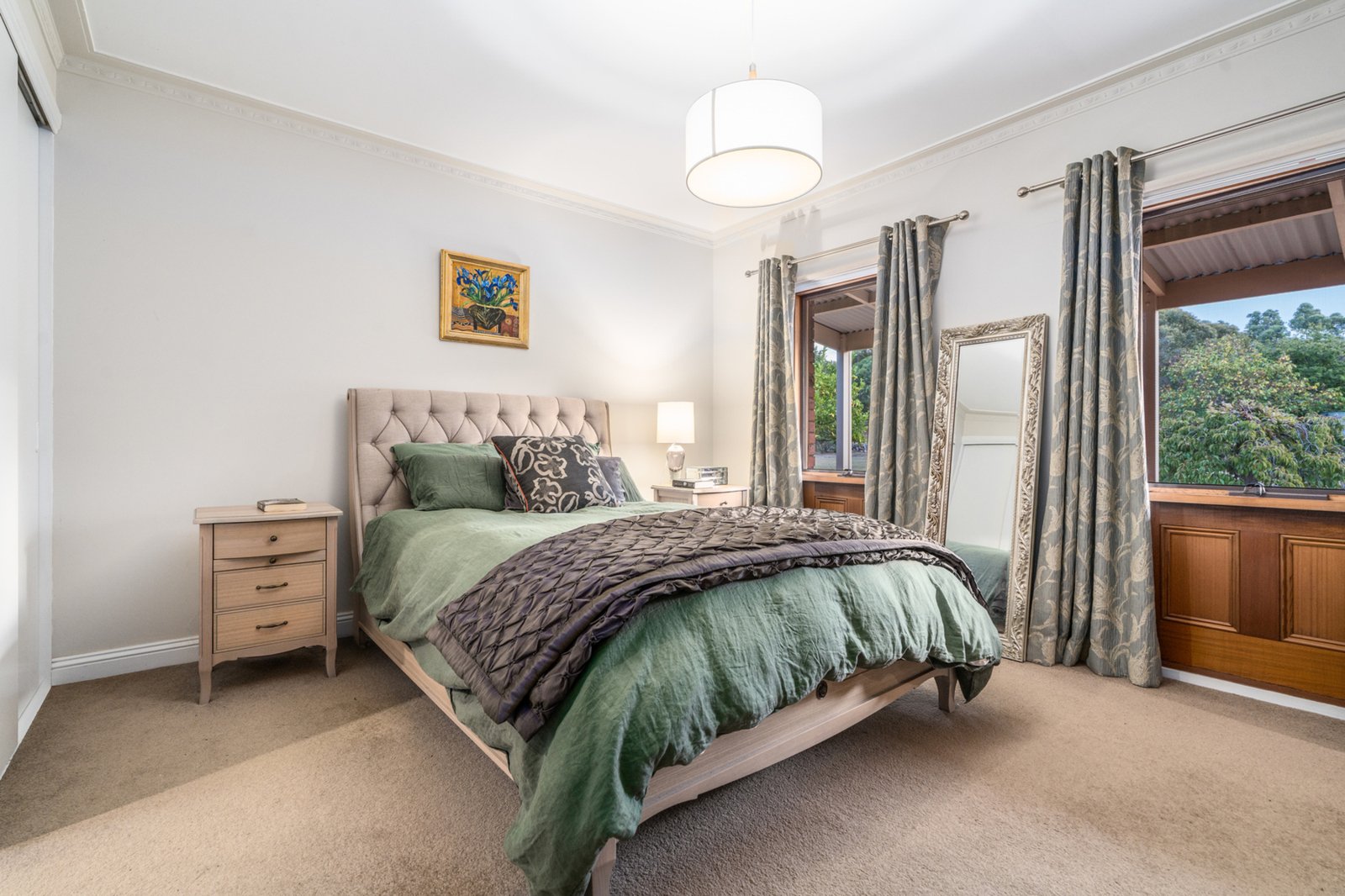 Thoughtfully designed, the home is divided into two distinct wings. One wing features the master bedroom with a concealed ensuite, a study, and a second living space. The other wing includes two generously sized bedrooms, seamlessly connected to the main open-plan living, dining, and kitchen area.