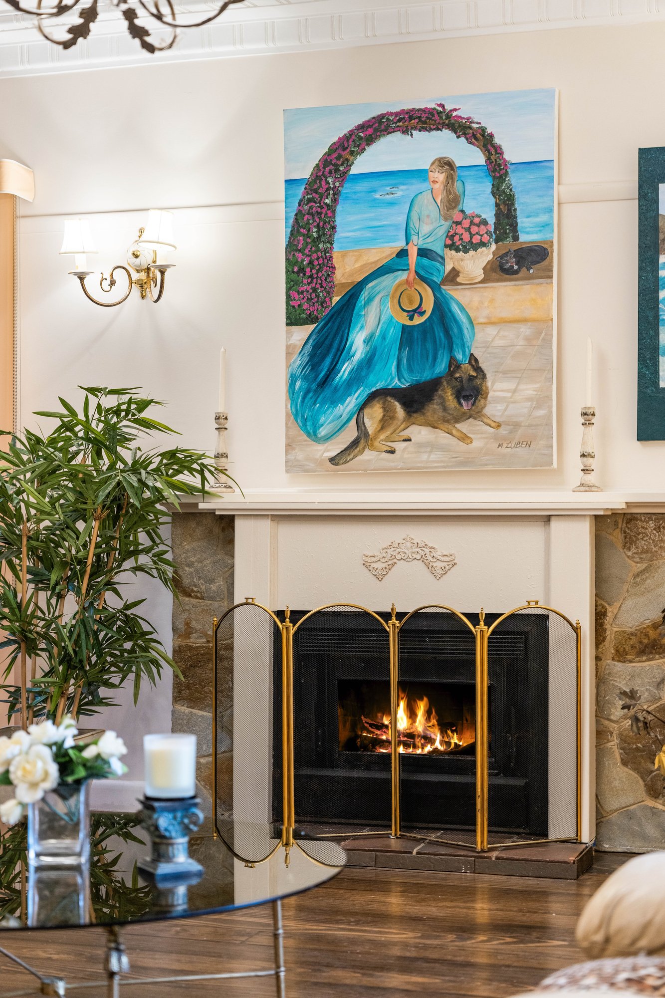 High corniced ceilings, vintage fireplace-mantle, solid hardwood floors