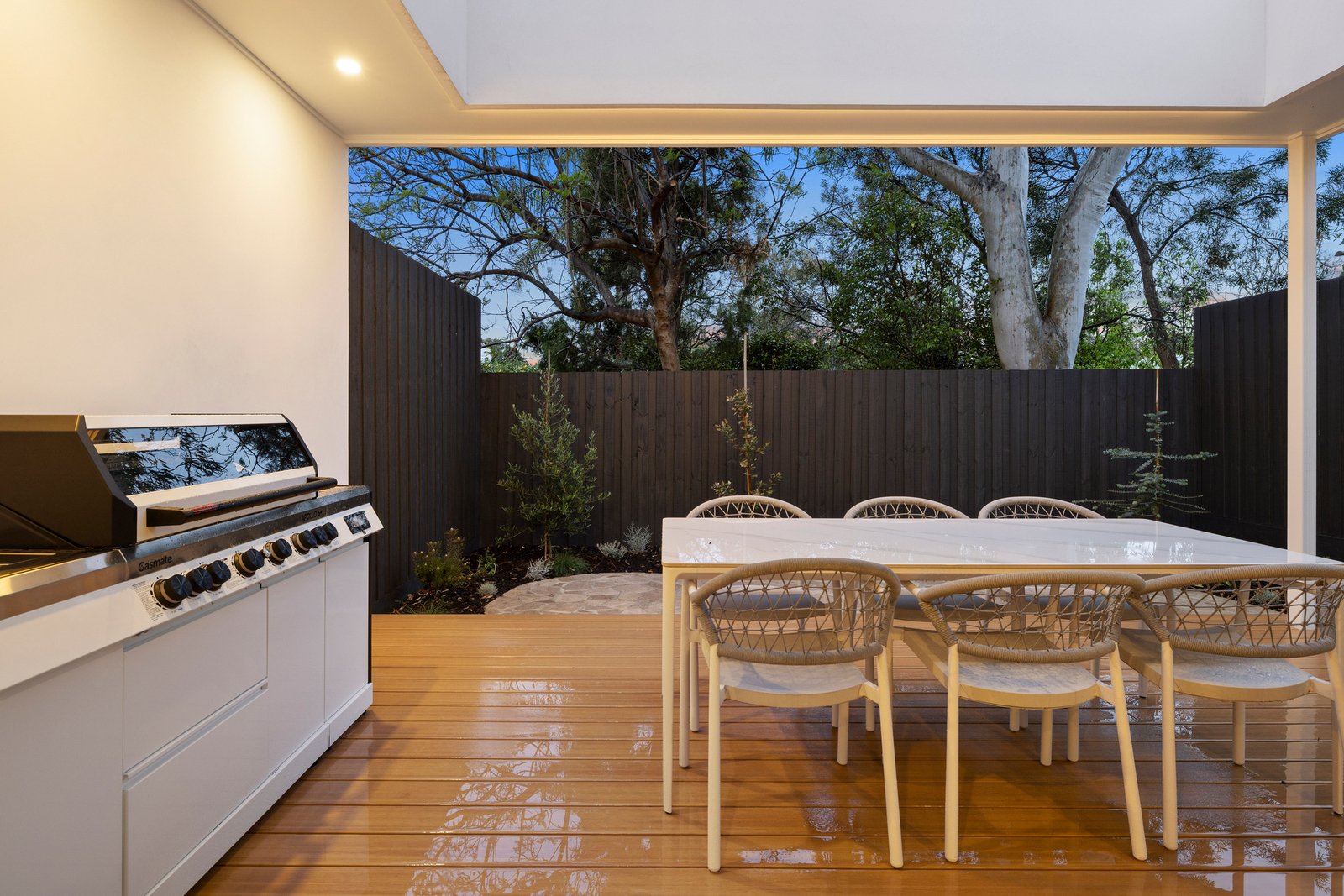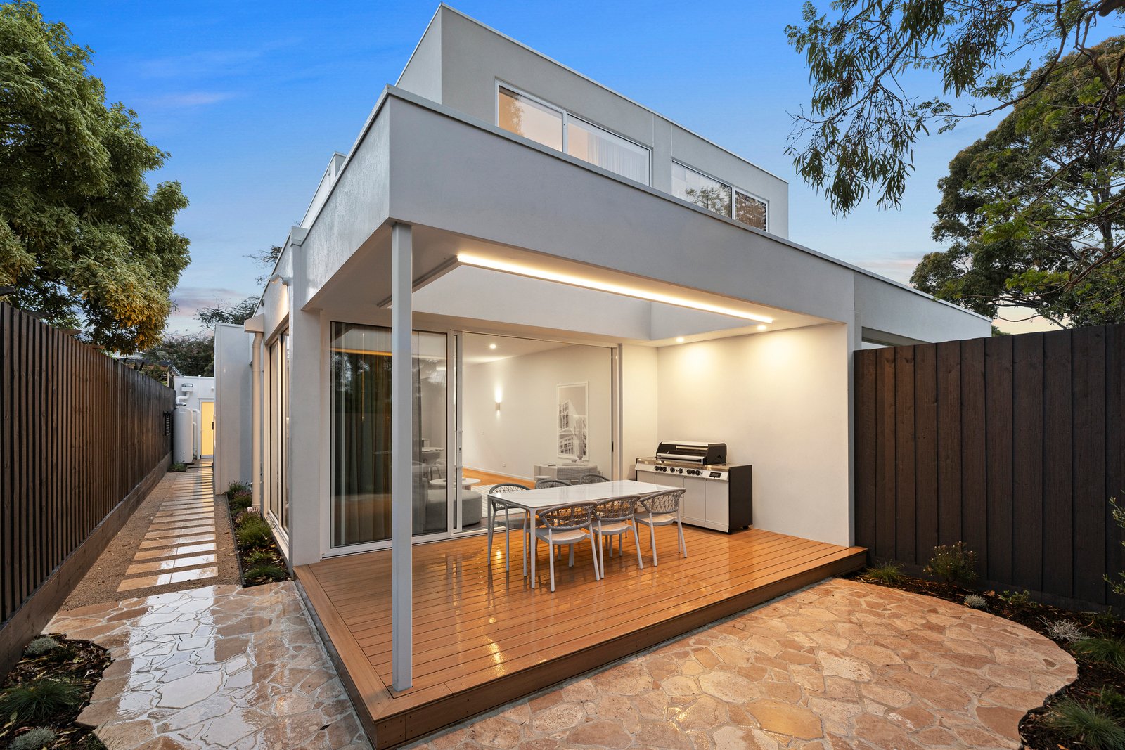 With incredible attention to detail at every turn, the residence is introduced by a striking contemporary-coastal facade where a Knotwood battened feature wall and garage door are highlights, seamlessly connecting the home to its surroundings.