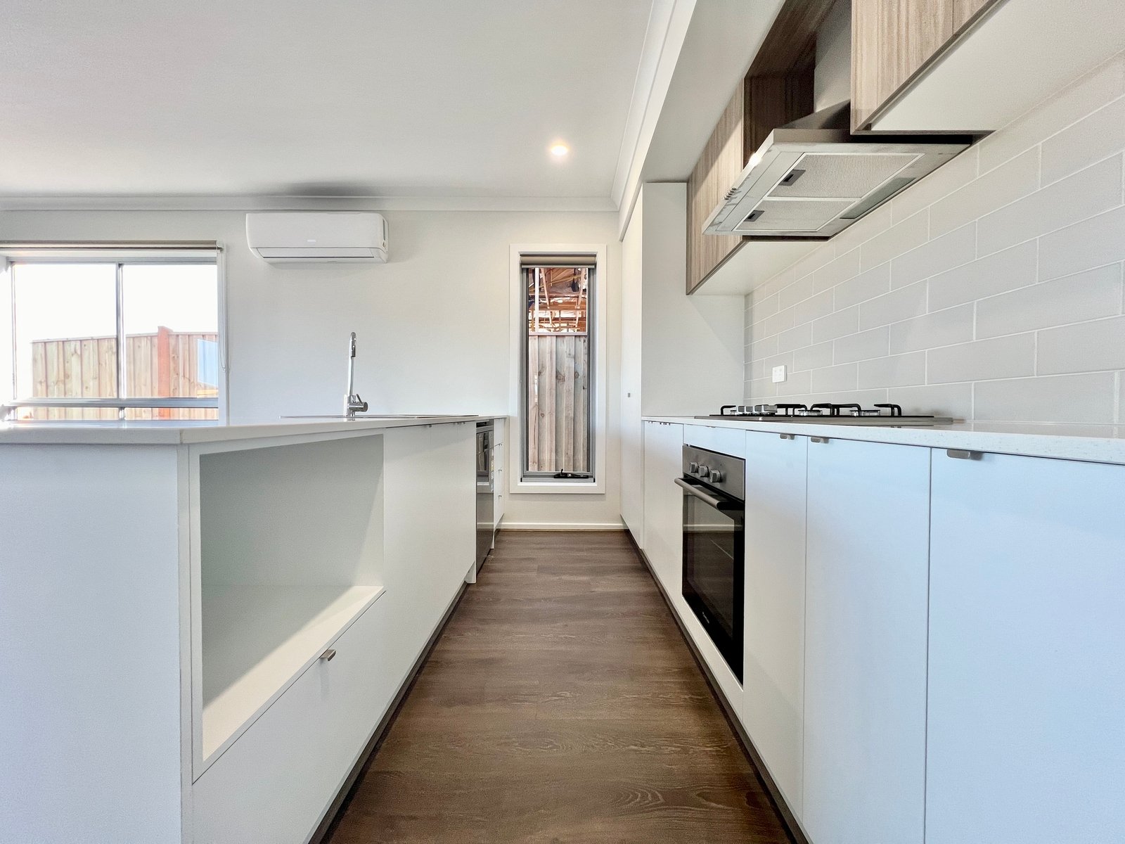 The heart of the home, is an open plan space incorporating comfortable living, dining and contemporary kitchen featuring stone bench tops, pantry and stainless appliances including 600mm gas cook top, oven, range-hood & dishwasher. A glass sliding door then leads out to the compact rear yard.