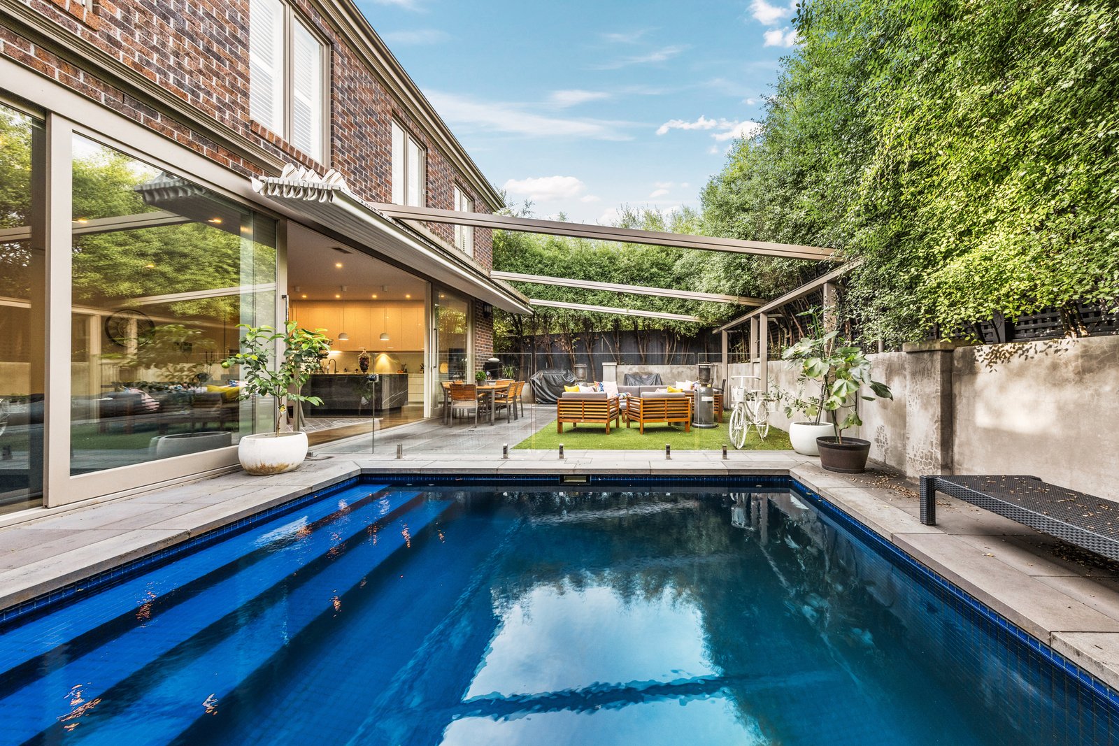 Framed by manicured gardens and a classic brick façade, the home unfolds into a series of grand, light-filled interiors designed for premium family living. A stunning marble kitchen with Miele appliances, butler’s pantry, and integrated Liebherr fridge anchors the open-plan living and dining domain, which flows seamlessly to a fully landscaped alfresco oasis featuring a solar and salt-chlorinated pool with retractable roof—ideal for year-round entertaining.