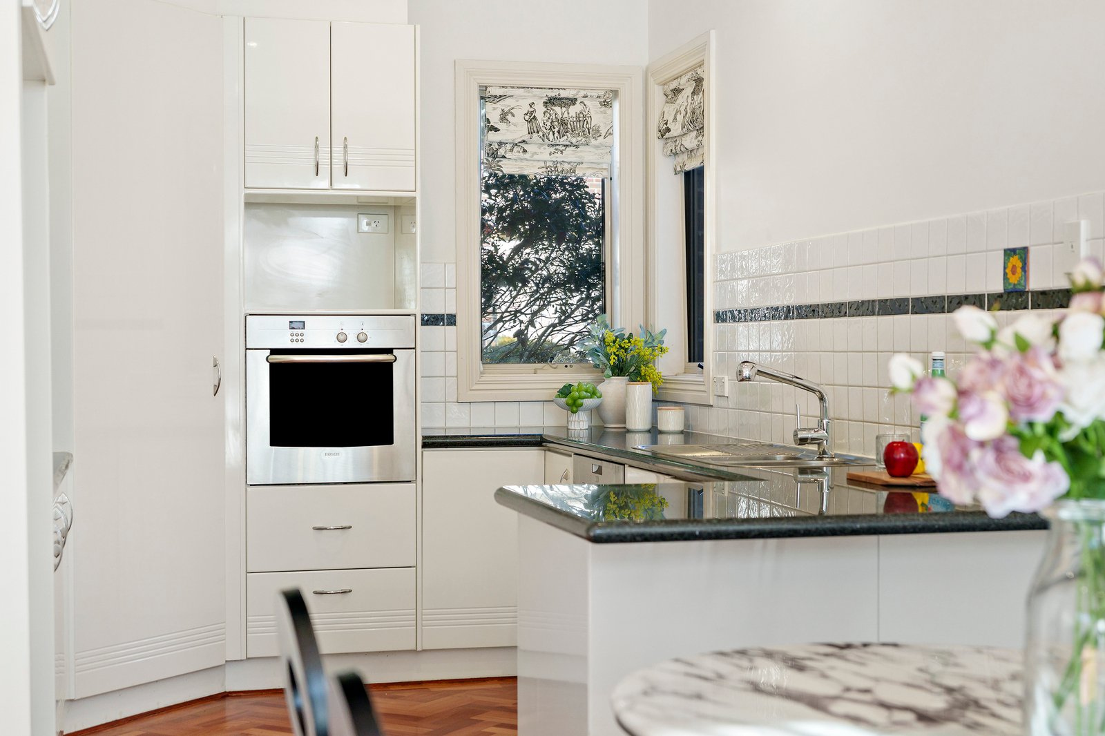 Step inside and you’ll be inspired by the distinguished interior which is rich in light and elegance across its double-storied design. High ceilings, decorative skirtings, and feature windows present a refined setting which captures gorgeous north facing light across its ground floor living, dining and outdoor entertainment space. A granite kitchen comes appointed with prestige Euro appliances (Bosch & Miele) with plenty of cupboard space, flowing across to a wraparound covered deck which is perfect for BBQs.
