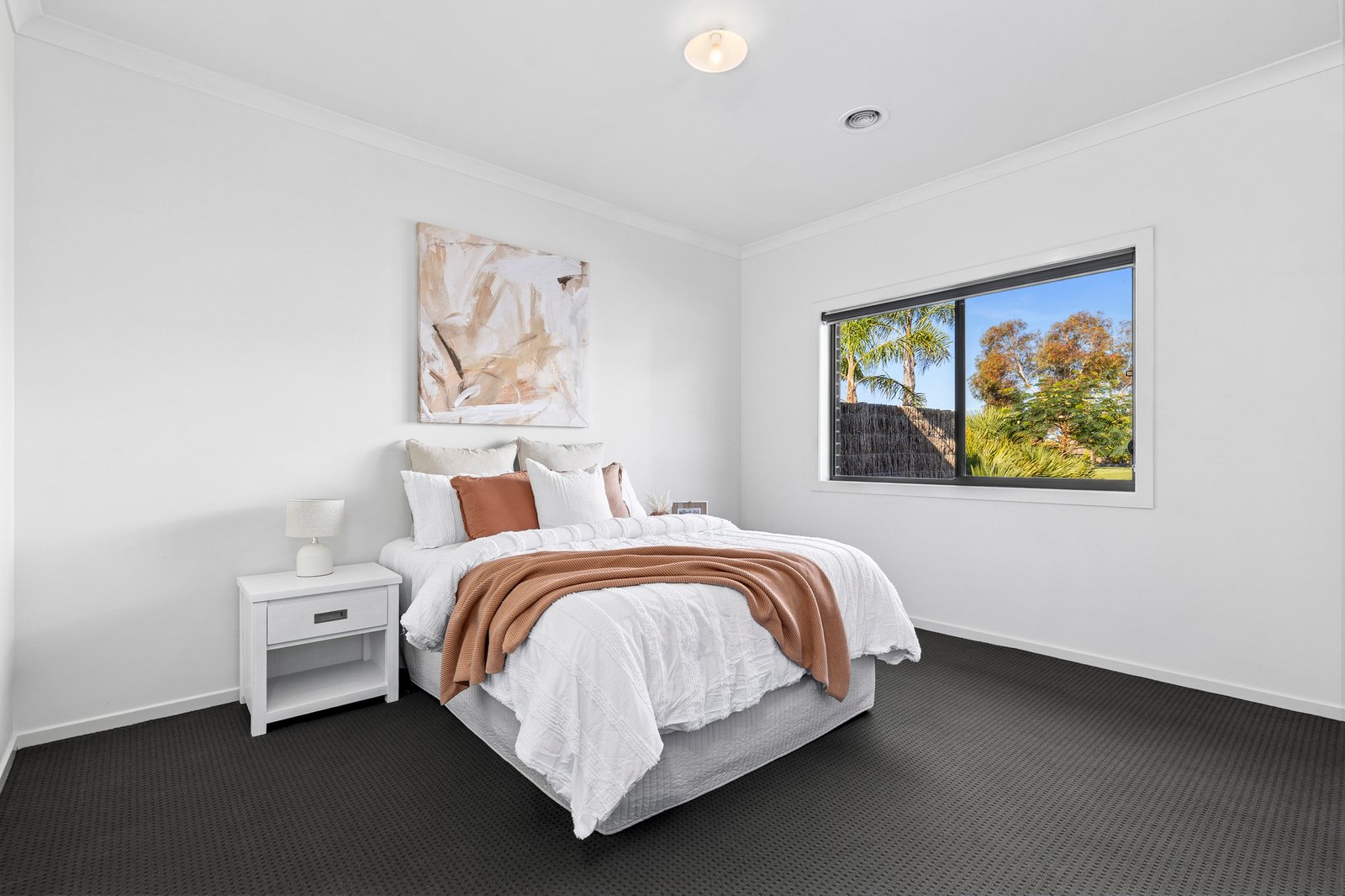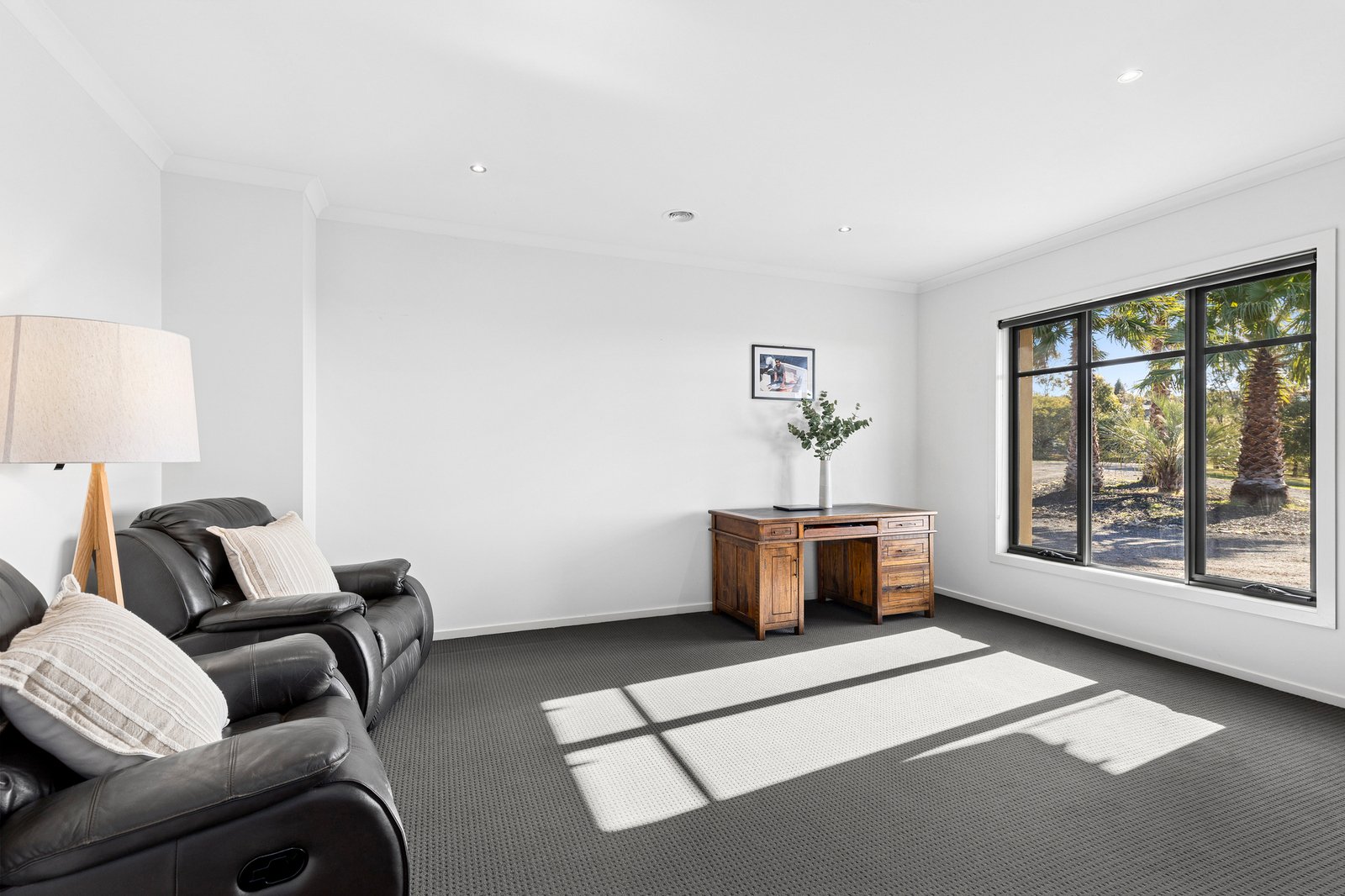 Established trees create a private and secluded setting, with a circular driveway leading to the stylish contemporary home. Stepping into a wide entry, your eye is taken through the length of the interior, highlighting the generous proportions and quality finishes. Double doors open to the luxurious main bedroom, featuring a beautiful bay window with views to the You Yangs, huge walk-in robes and a tastefully presented ensuite with double vanity, spacious shower, and separate wc. An adjacent lounge offers a quiet space to relax with a tranquil garden outlook. Three further bedrooms are in a separate wing, all include built-in robes, serviced by a stylish family bathroom and separate wc. A rumpus room in this zone completes the ultimate kids’ retreat.