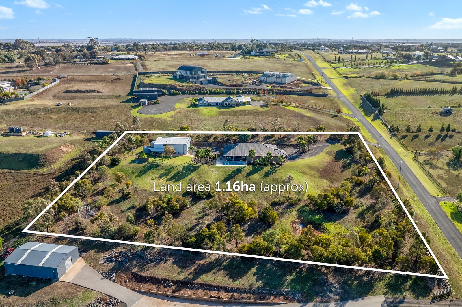 Welcome to your private family resort, offering spacious family living, exceptional poolside entertaining, outstanding garaging and workshop facilities, set on lush grounds occupying 2.9 acres (approx.). Perched on an elevated block, with sweeping views across the city skyline to the You Yangs, this stunning location offers a tranquil country atmosphere, while only 5 minutes (approx.) from local shopping and amenities, and 15 minutes (approx.) from the CBD. Quality built and immaculately maintained by one owner, this property is now ready to change hands, presenting an exceptional opportunity to make this spectacular home and lifestyle yours.