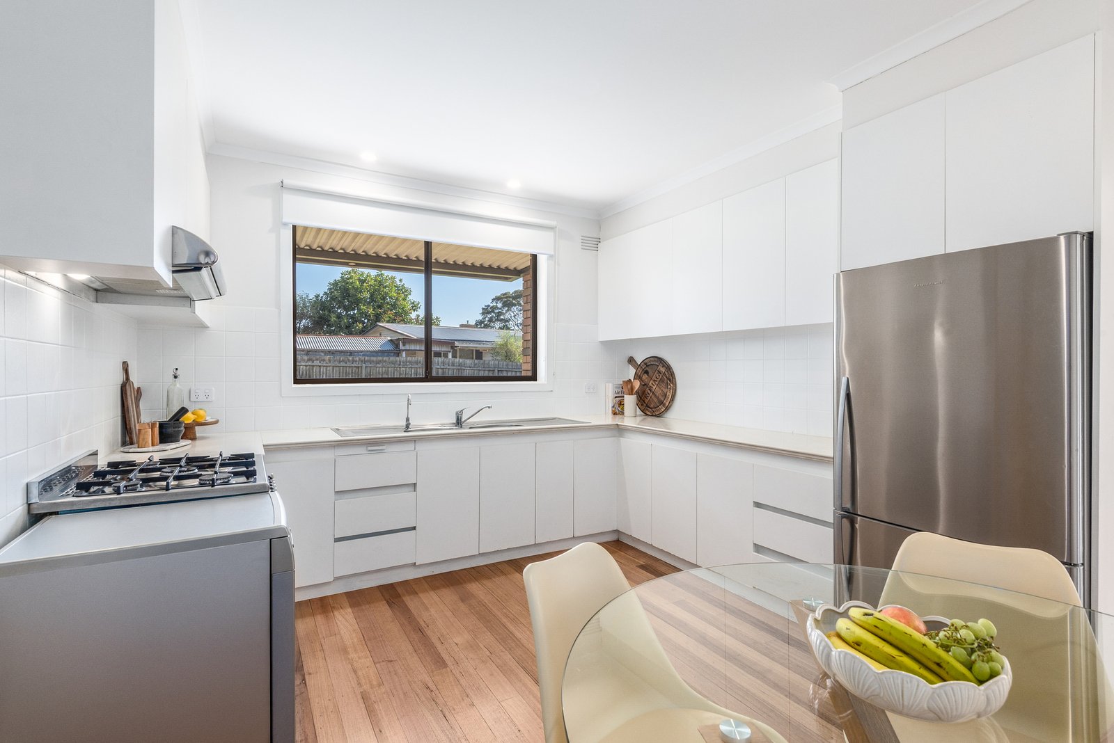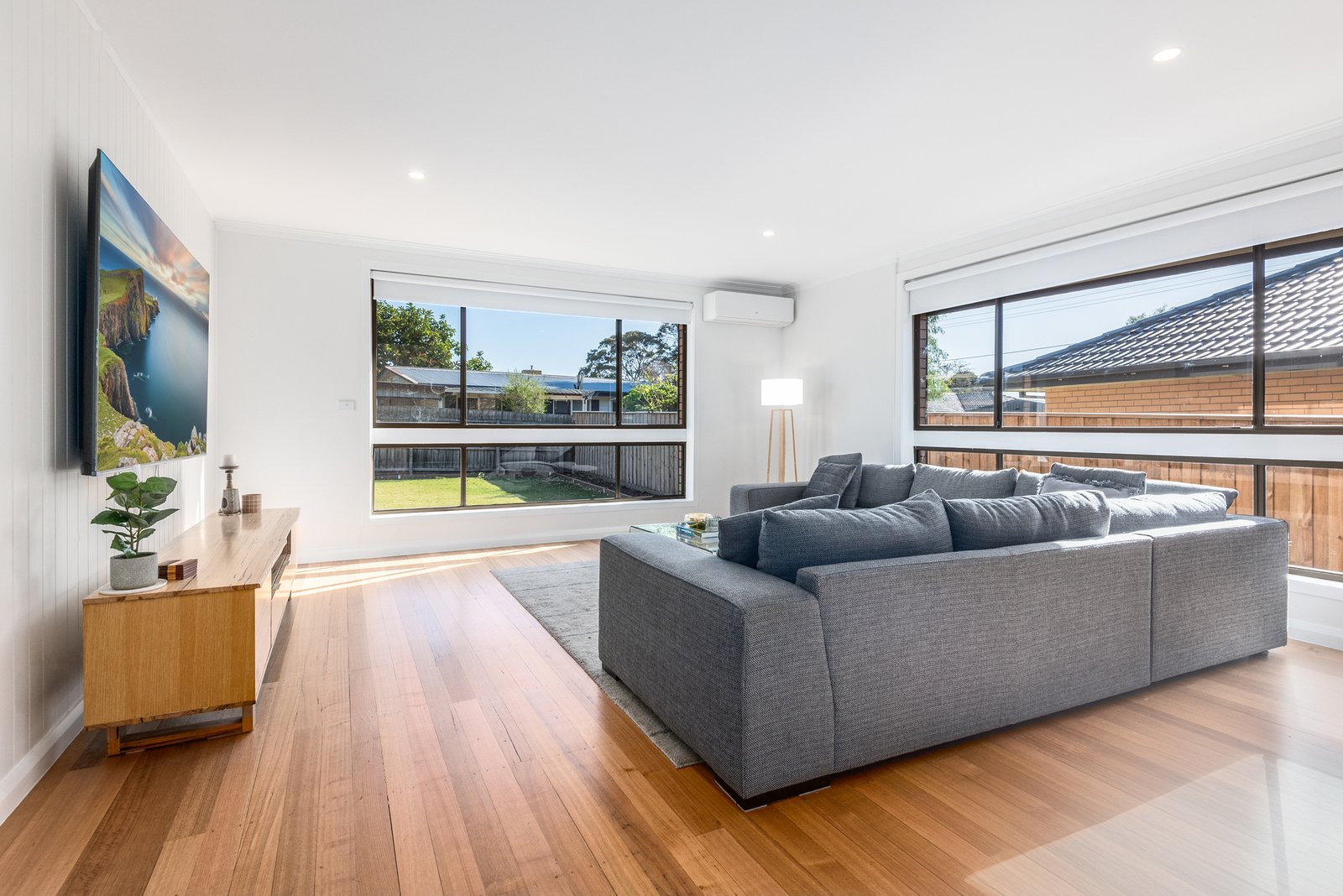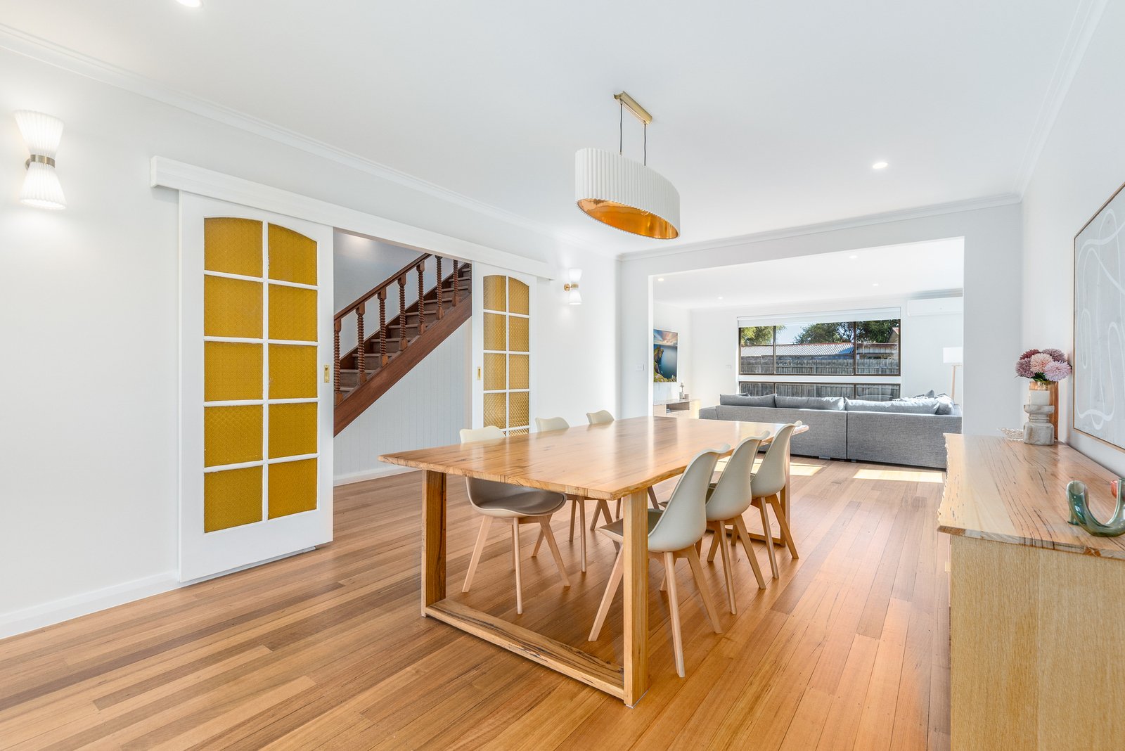 As you step inside, the first thing you'll notice is the abundance of natural light that pours through the north-facing windows, bathing the expansive open-plan living and dining areas in a warm glow. The stunning vic ash floors further enhance the inviting atmosphere, creating a sense of elegance and warmth throughout. The spacious living area is ideal for everyday family life as well as entertaining guests, with a split system for heating and cooling to ensure year-round comfort.