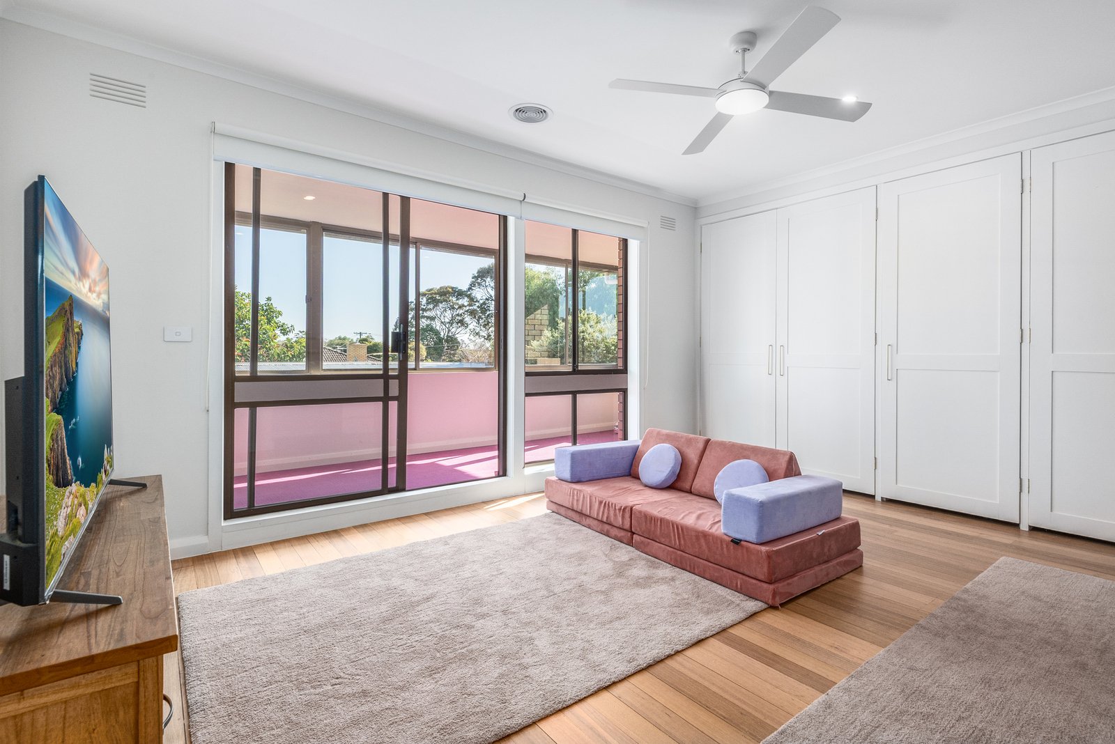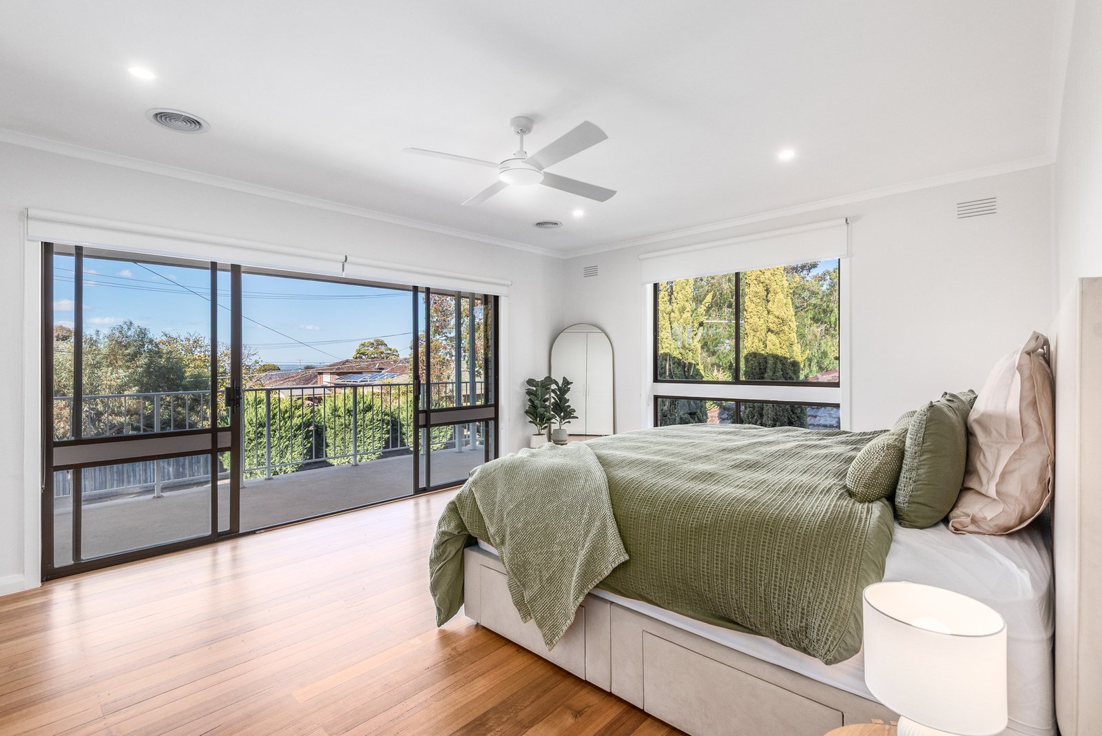 Upstairs, the home continues to impress with four oversized bedrooms. Three of the bedrooms feature built-in robes, while the luxurious master bedroom offers not only a huge amount of space but also direct access to a private balcony, where you can enjoy your morning coffee or evening drink while taking in the scenic views. Bedroom three is also a standout, offering direct access to a sunroom that overlooks the large backyard—ideal for enjoying a peaceful retreat or watching the kids play.