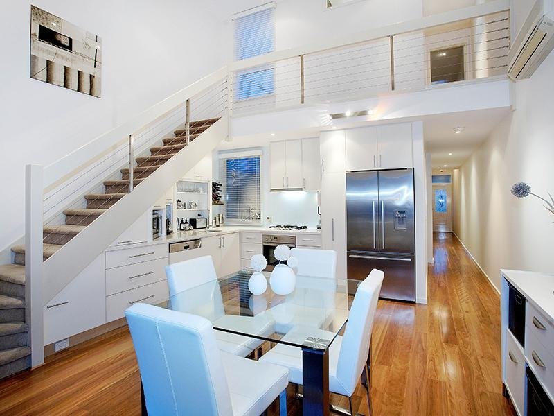 In a location full of privileges, hidden behind a century old facade, a modern masterpiece awaits. Downstairs, comprises: Two double bedrooms, generous central bathroom (spa bath), Modern kitchen and open plan dining & living room with bi-fold doors leading to courtyard incorporating off street parking. Upstairs: Huge main bedroom/parents retreat, ensuite, built-in robes and study. Features: Raised ceilings, triple glazed windows, alarm, intercom, polished brush box timber floors, fireplace, reversed cycle split system, rear ROW with remote roller door, Miele kitchen appliances + Bosch dishwasher.