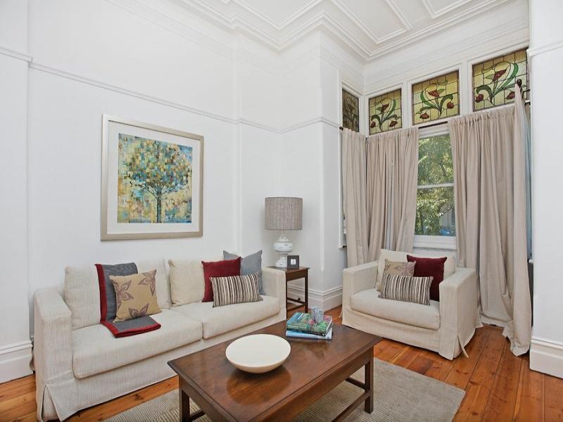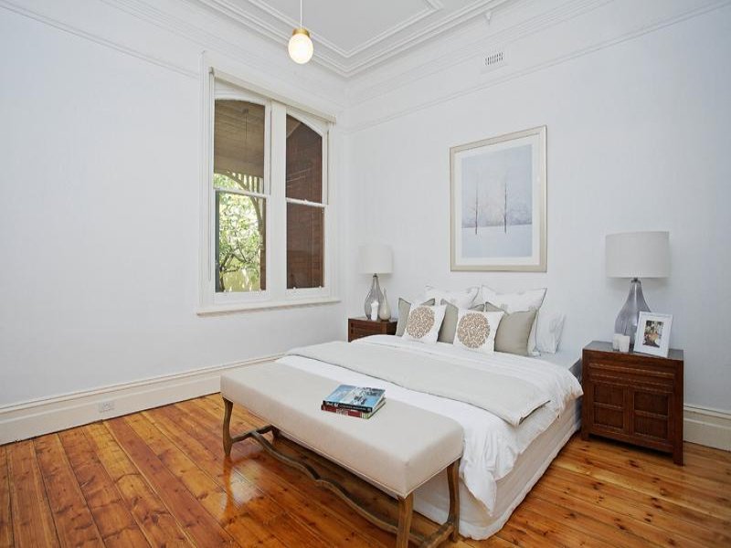 further huge bedrooms (built-in robes), central bathroom, laundry, separate living/meals area and well appointed kitchen (stone bench tops) leading to sun drenched paved courtyard with pedestrian ROW. Exquisite period detail including: high decorative ceilings stain glass windows, Baltic timber boards & open fireplaces throughout. One of the districts best examples of Edwardian architecture. Allotment: 223sqm (approx).