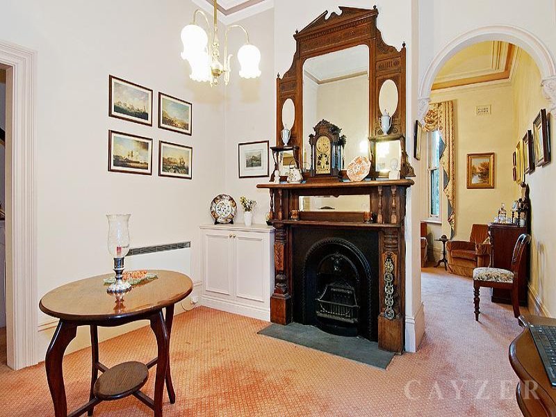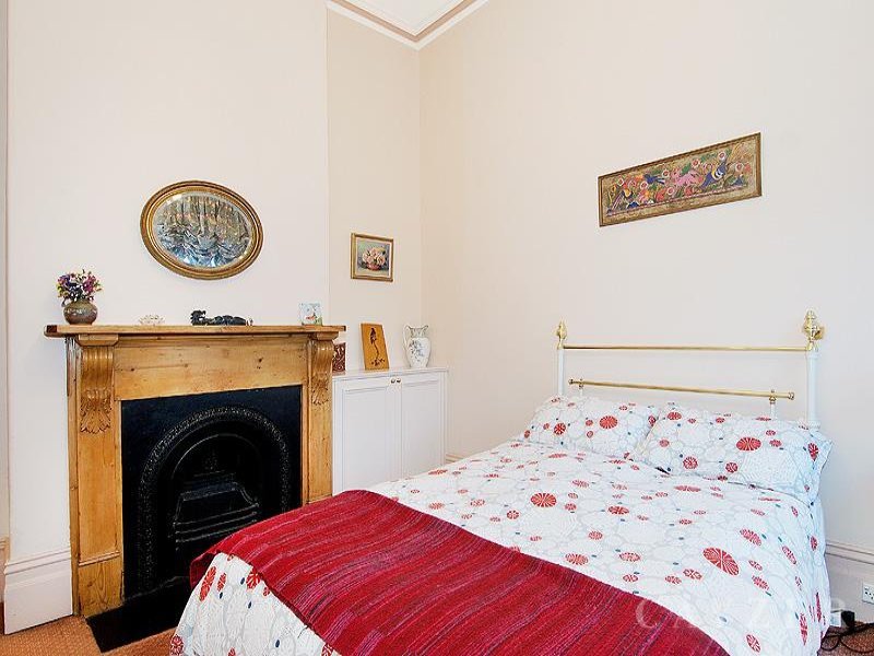 This character filled home is in excellent order throughout with abundant period features and only moments from Albert Park Village. Comprising: Formal sitting room (gas open fireplace), separate dining room (open fireplace), central bathroom and kitchen leading to open plan living room. Upstairs: Three bedrooms (main bedroom with balcony access), and second bathroom. Features: Low maintenance courtyard garden with double carport, current planning permit for garage + loft.