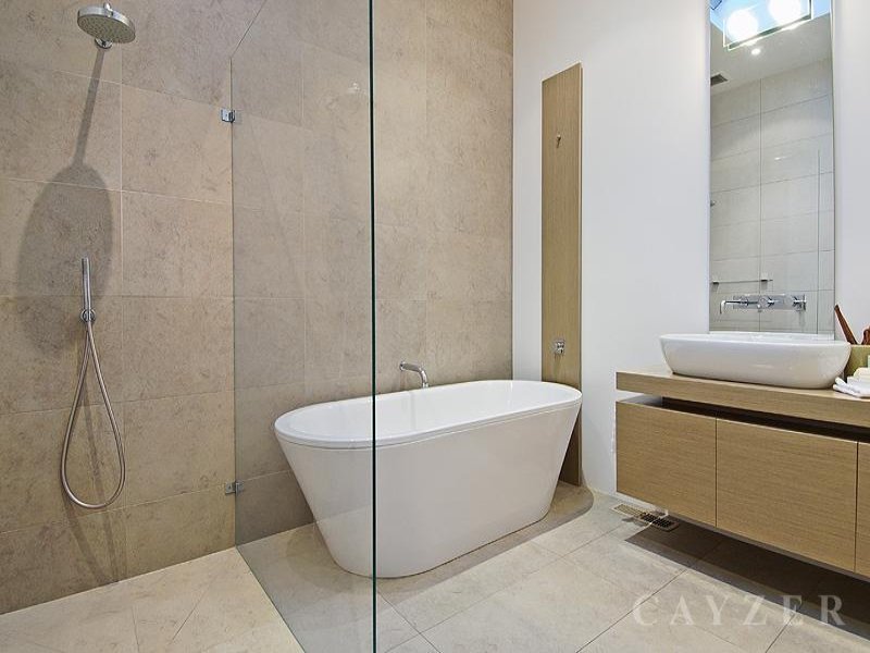 area, picturesque landscape garden, adjacent kitchen with Euro appliances, stunning central bathroom which was featured in Melbourne Kitchen + Bathroom Design magazine and separate laundry facility. Features: Plantation shutters, gas central heating, split system air conditioning, timber floors and abundant natural light. Brilliantly located to all of the district's premier facilities including Clarendon Street shopping precinct, Albert Park lake and MSAC.