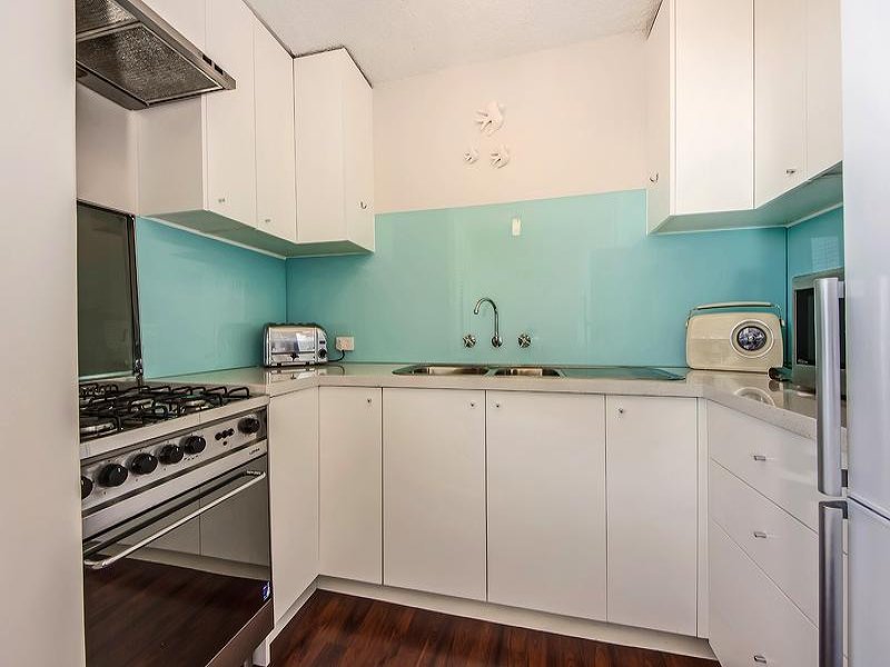 This stylish renovated north facing one bedroom apartment offers a fantastic bayside lifestyle with fabulous wrap around bay, city and lake views from the 4th level of this secure building. Comprising: Entry hall, spacious living and dining room, wrap-around balcony, brand new state-of-the-art kitchen, big bedroom (with built-in robes), designer...