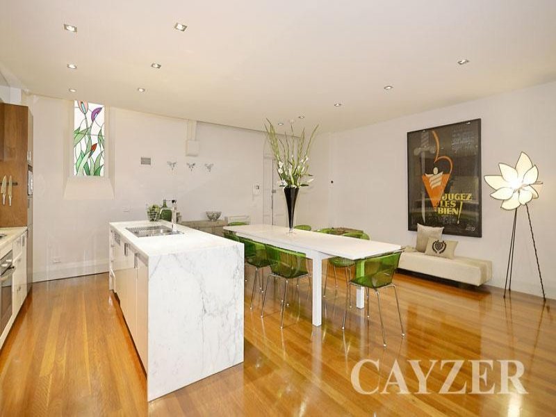 This stunning church conversion will appeal to those wishing to invest or have the ideal heavenly base in this most prestigious location. Only moments from the bay, public transport and vibrant Middle Park village, be at peace in this two level, two bathroom luxury property (107sqm approx). With its ethereal atmosphere, high vaulted ceilings, lead-light windows and hardwood floors, the lower level is showcased by a huge open plan living / dining area complimented by a designer kitchen with quality appliances, timber finishes and marble bench tops. Upstairs, the master bedroom is massive (formally two bedrooms and easily reconverted) with stylishly finished His & Her bathrooms. Features: Heating/cooling, security intercom, undercover parking and a separate storage room compliment what will be a memorable viewing experience.