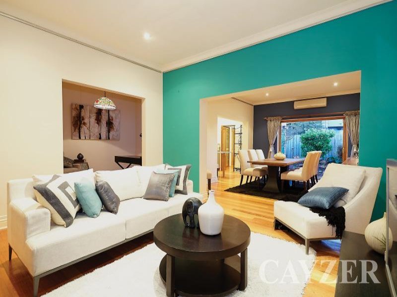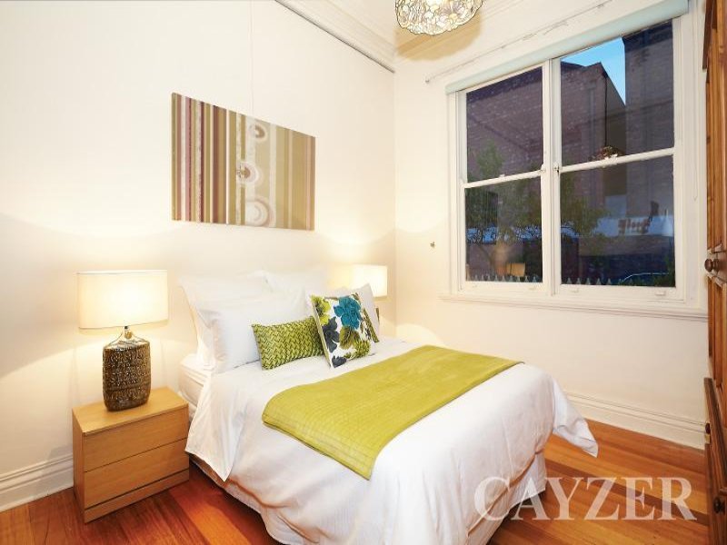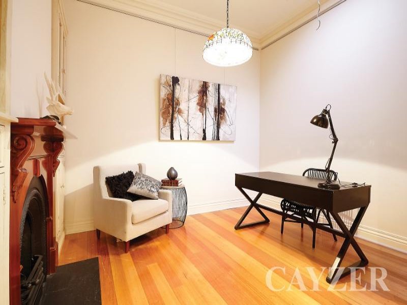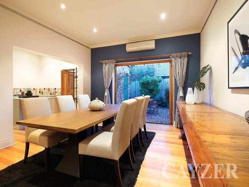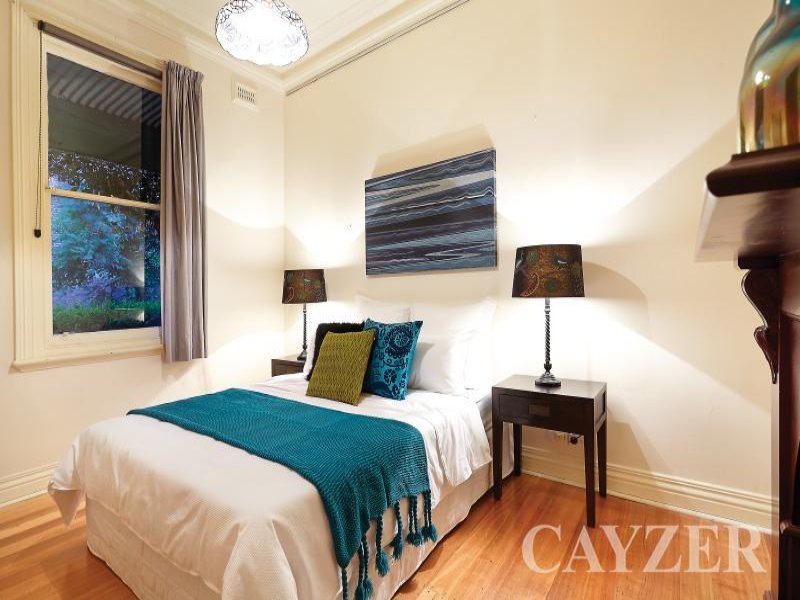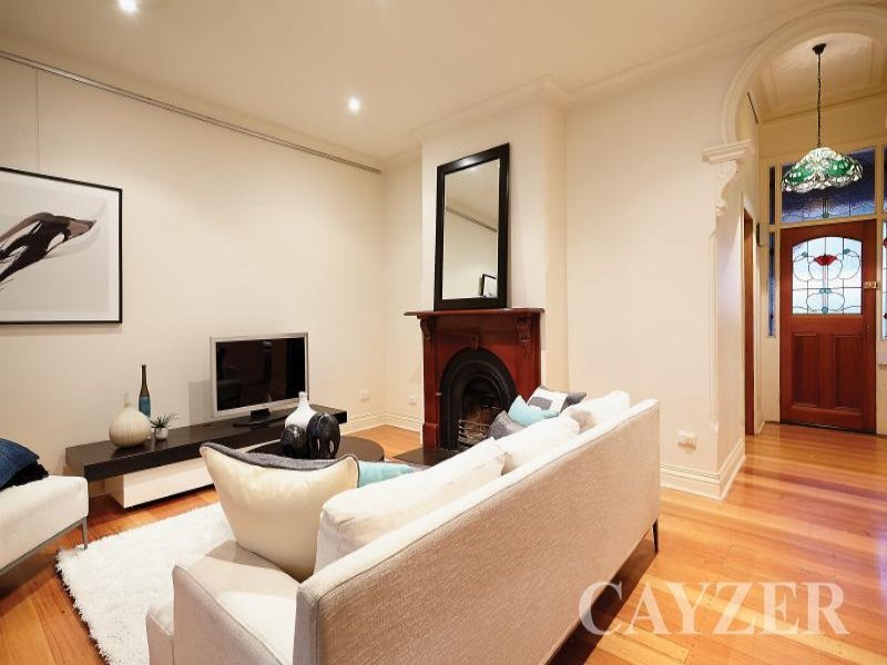 Distinctive three bedroom double fronted Victorian residence in quiet location yet moments to South Melbourne Market and Clarendon Street shopping precinct. Comprising: Entrance hall, two bedrooms, dining room, third bedroom, living room opening to well-appointed kitchen, meals area, bathroom (with spa), separate laundry and fabulous paved northern rear courtyard to right of way. Features: Polished floors, open fireplaces, cornicing and lead-light. Positioned at the top end of Cobden Street, just a minutes' walk to the Cobden Street Reserve and Albert Park Lake. Please enter via Moray Street.