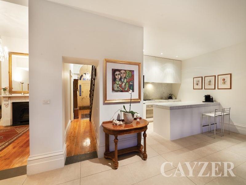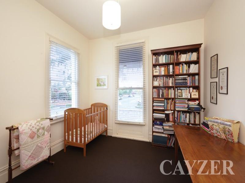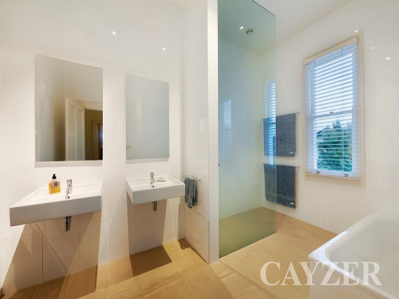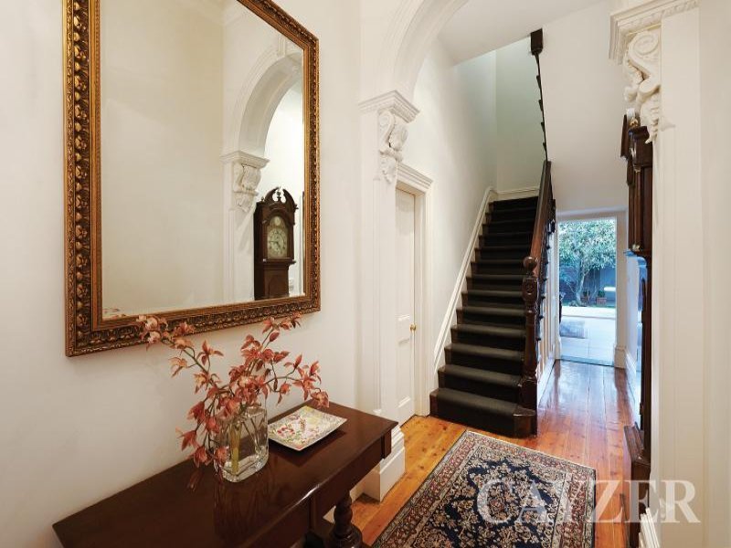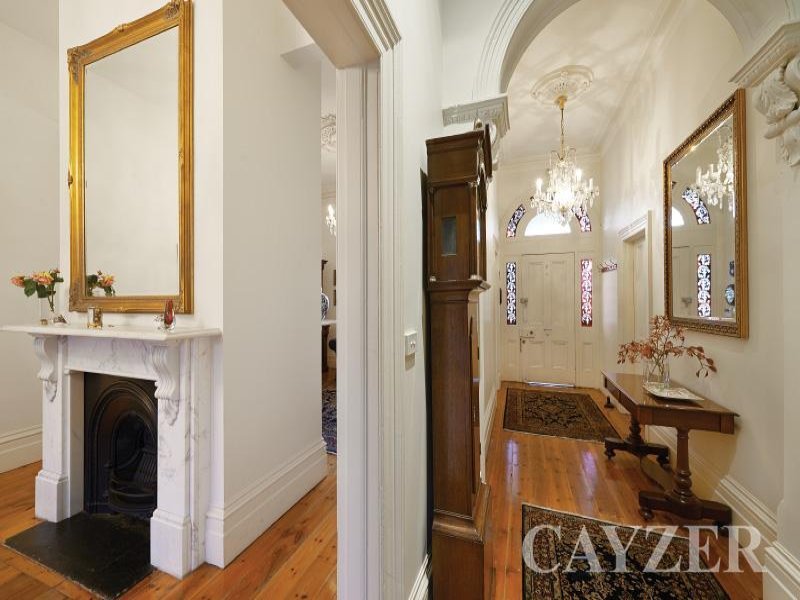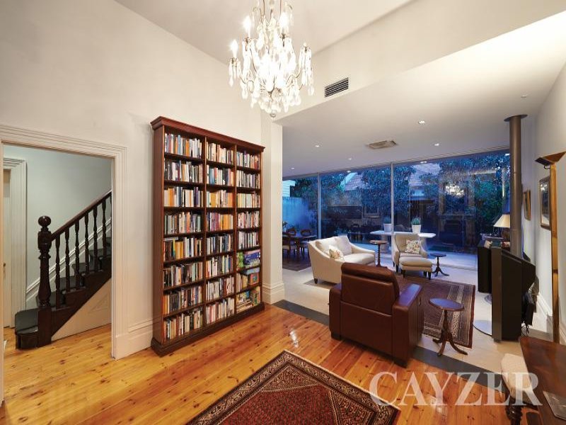 Stunning light filled four bedroom double fronted balconied Victorian terrace home effortlessly blends period character with modern day architecture. Comprising: Front bedroom/office, spacious living and dining areas linked with shared open fireplace, central bathroom/laundry, sleek marble finished kitchen, full-width family and meals area with a wall of glass opening to terrace and garden areas. Upstairs: Three further bedrooms, two with balcony access and second family size bathroom. Features: Remote tandem garage via Bridge Street, storage, period features, open fireplaces and polished floor boards.