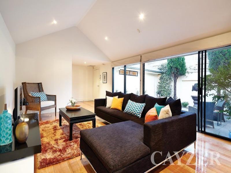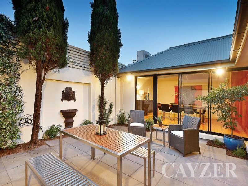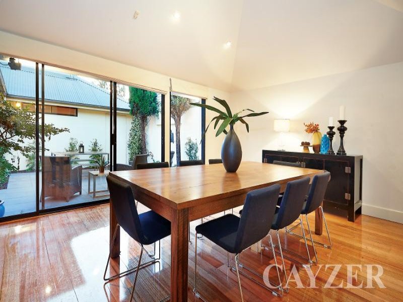 Positioned in one of Port Melbourne's most coveted and quiet locations, this immaculate four bedroom Bank home is a true rarity. Comprising: Large front garden entrance, main bedroom (with duel vanity & shower ensuite plus extra-large walk-in robes), separate laundry, well-appointed chef's kitchen overlooking generously proportioned living and dining areas, both with cathedral ceilings and floor-to-ceiling sliding glass doors leading to sun drenched paved courtyard. Upstairs: Three further bedrooms (with built-in robes) plus second bathroom. Features: Lock-up garage plus room for further parking, heating/cooling, polished timber floors throughout and ample storage. Opposite lush parkland and moments to beach, public transport, shops & the CBD.