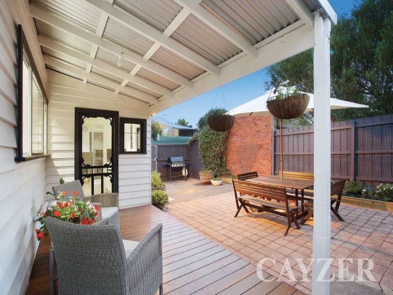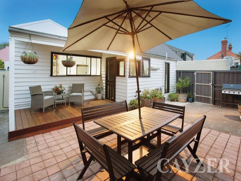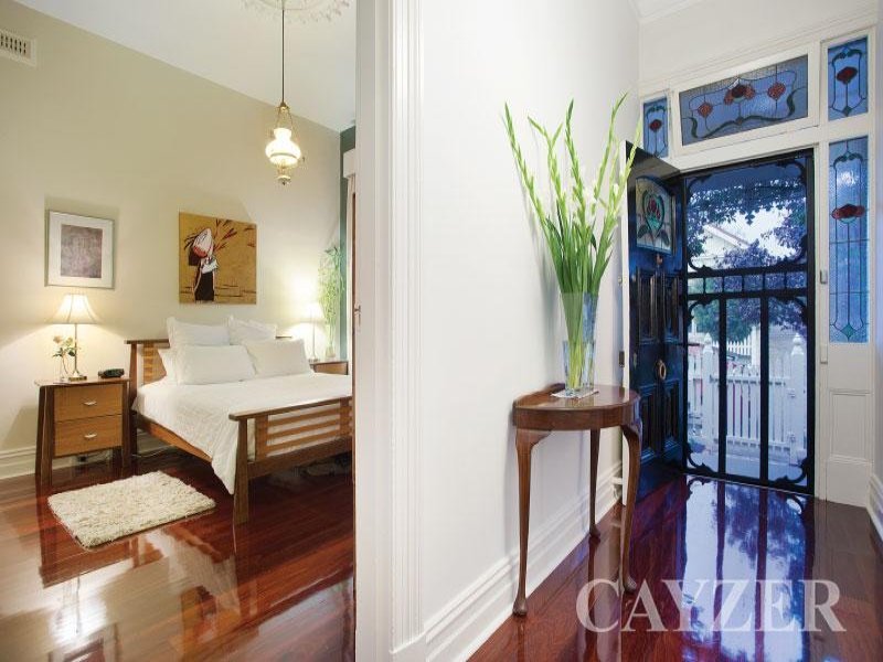 This delightful free-standing, double fronted Victorian with the advantage of a prime corner position ticks all the boxes. A tree lined location provides welcomed tranquillity while close proximity to Middle Park shops, cafes, light rail, the beach and city provides enormous lifestyle advantages. Behind a beautiful ornate stain glass entrance is a grand extra wide hallway that reveals exceptional high ceilings and freshly polished hardwood timber floors. Comprising: A main bedroom (with built in robes) matched by a second double bedroom (with open fireplace), both of impressive proportions whilst a third room offers a functional study space. The bright open plan living and dining room are rich in period detail with a working fire place that seamlessly flows into a light filled modern kitchen that features caesar stone counter tops, stainless steel appliances and ample storage, with contemporary finishes continued in a sleek bathroom design and separate laundry. A covered alfresco deck area provides extra entertaining zones for all seasons and beyond a full width northerly courtyard garden accessible from all sides is lush, leafy and perfectly private, forming a beautiful conclusion that captures the attention and delights the senses. Impeccably presented and pretty as a picture inside and out. Features: Hydronic heating, cooling, attic roof ladder storage and possible off street parking. Reap the rewards of this recently renovated home and become part of this desirable lifestyle locale.