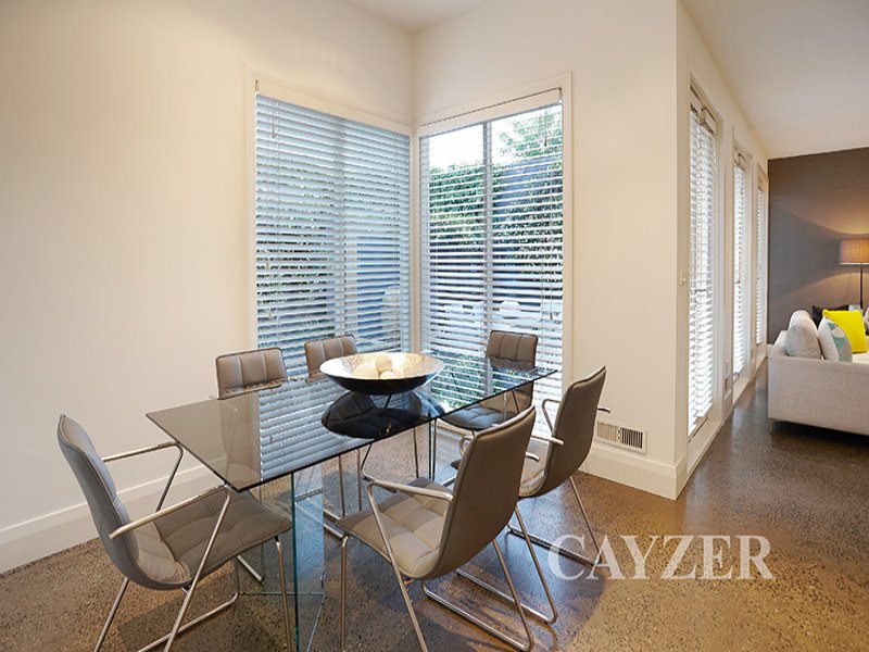 Tucked away in quiet position yet moments from all attractions, this freestanding individual townhouse is sure to please. Downstairs comprising: Wonderful open plan living/dining space opening to landscaped courtyard, beaming with sunshine. Modern kitchen and generous double garage. Upstairs: Main bedroom/parents retreat with full ensuite and walk-in robe, two further bedrooms and central bathroom. There is also a genuine study and second living zone/studio space to private balcony. Features: Polished concrete and timber floors, ducted heating, air conditioning upstairs, ducted vacuum and an abundance of natural light. Prior offers considered.